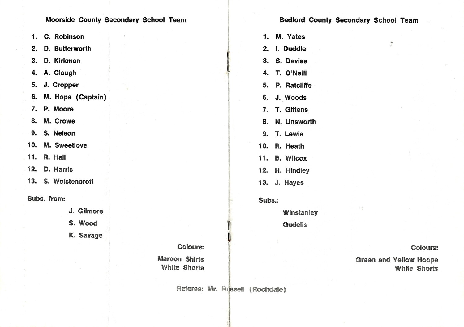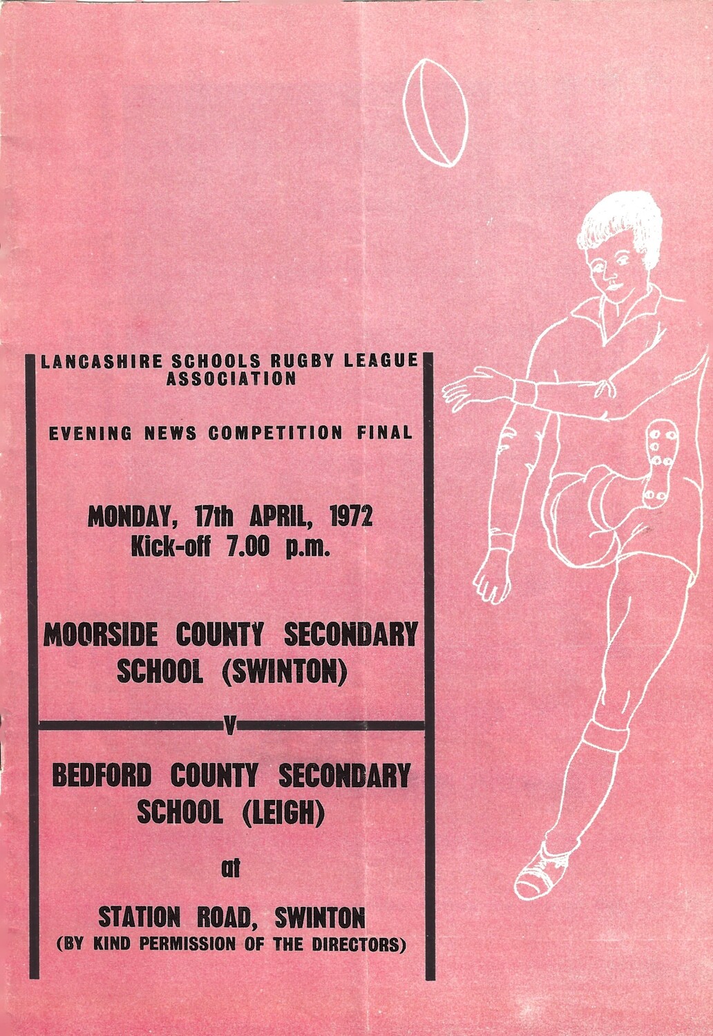 1972 Moorside County Secondary School (Swinton) v Bedford County Secondary School (Leigh) (17/04/1972) Lancashire Schools Rugby League Association Evening News Competition Final Rugby League Programme