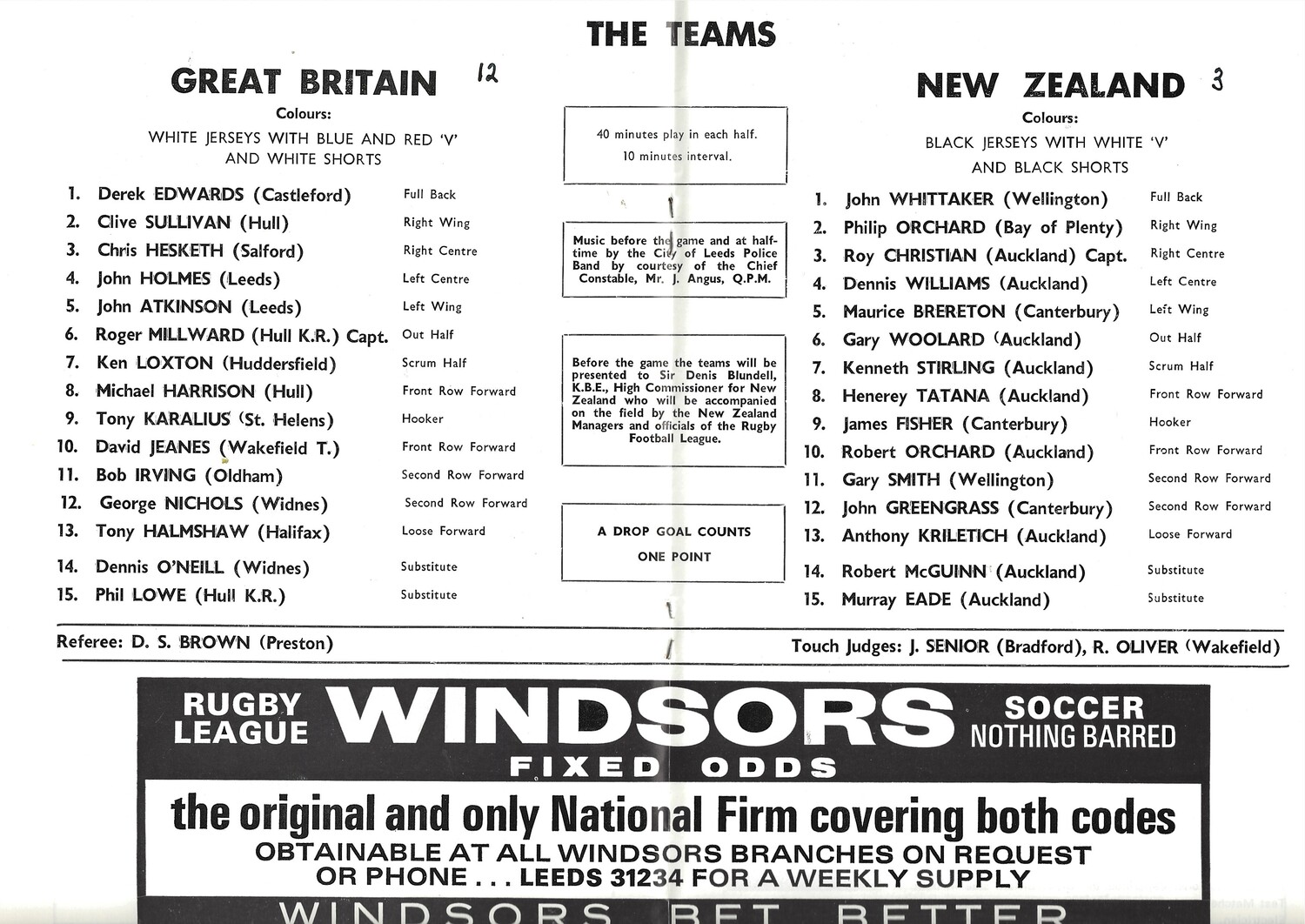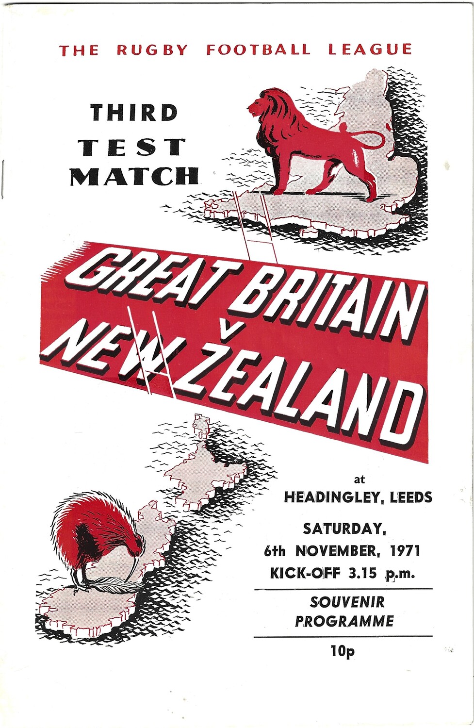 1971 Great Britain v New Zealand Third Test Match Rugby League Programme