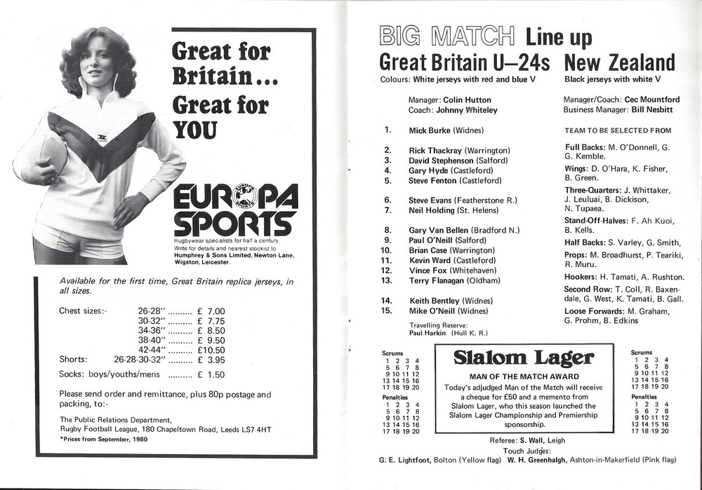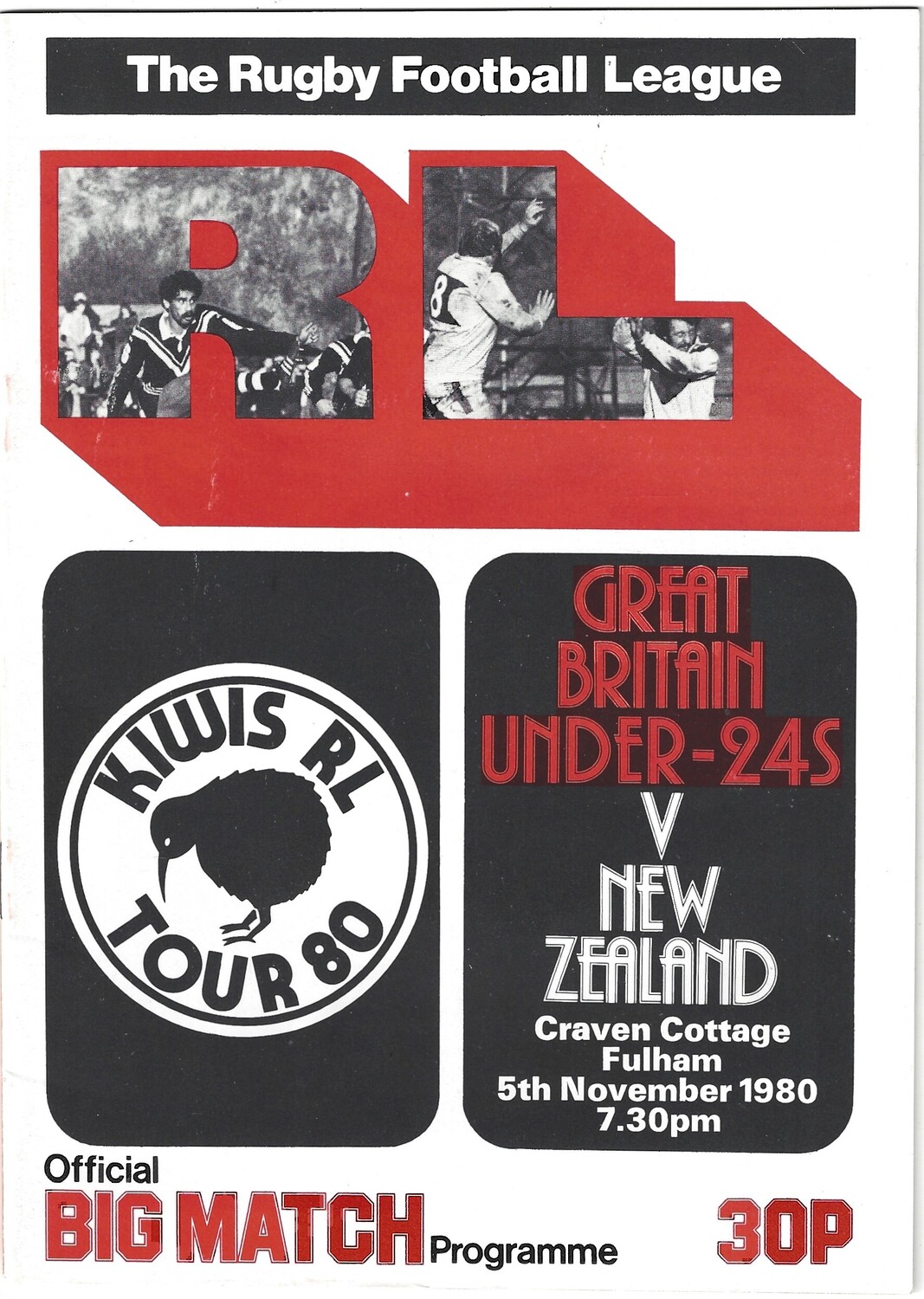 1980 Great Britain v New Zealand Under-24 International Rugby League Programme