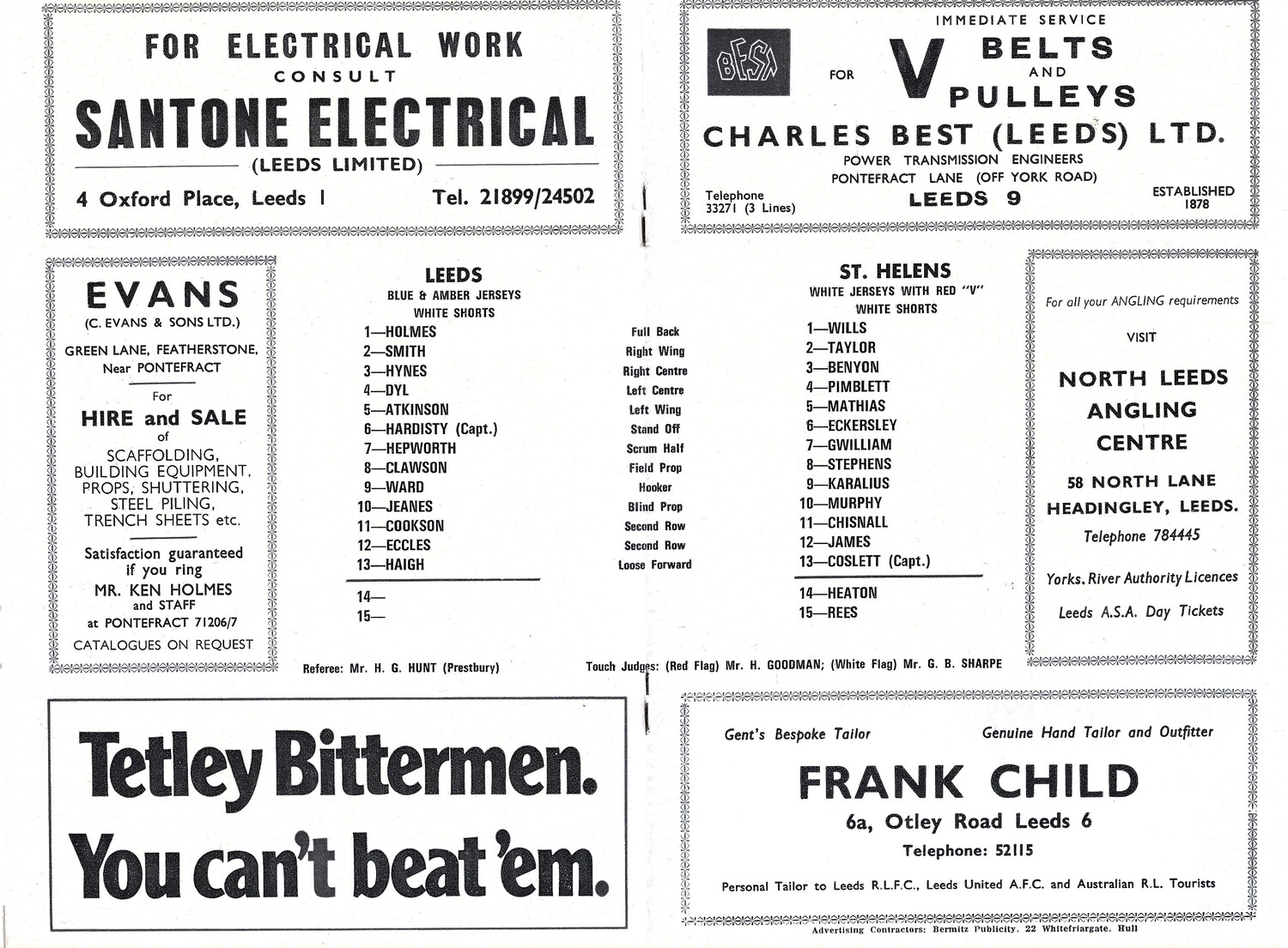1973 Leeds v St. Helens (06/05/1973) Northern Rugby Football League Championship Play-Off Semi-Final Rugby League Programme
