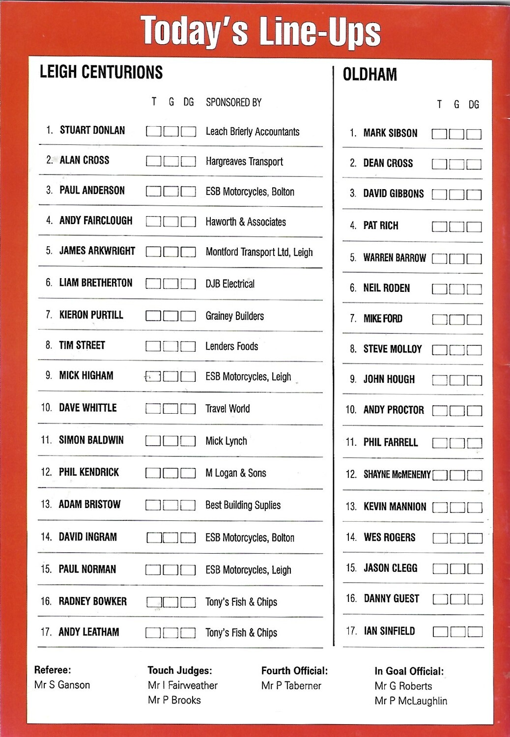 2000 Leigh Centurions v Oldham Northern Ford Premiership Major Semi Finals Rugby League Programme