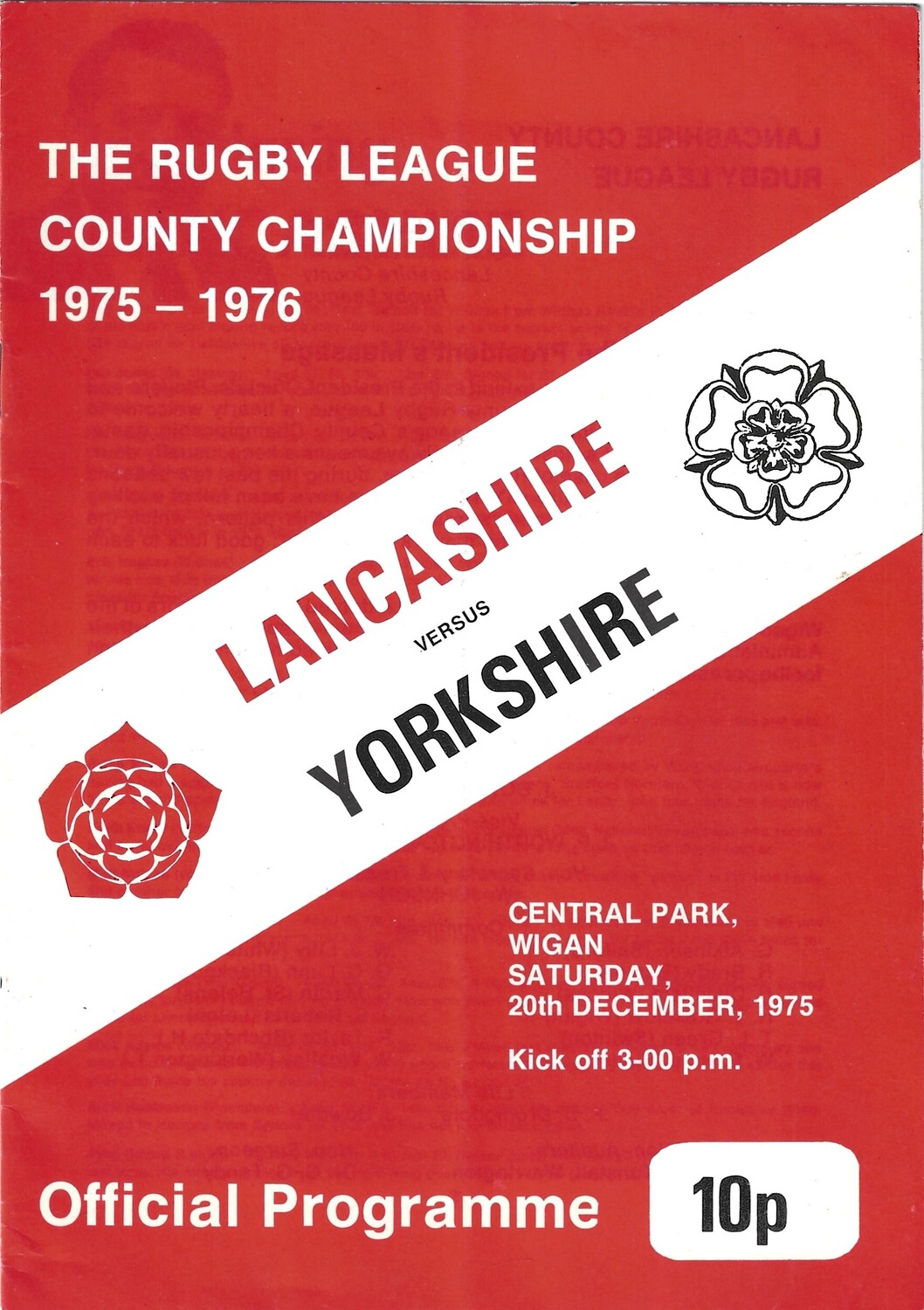 1975 Lancashire v Yorkshire (20/12/1975) Northern Rugby League County Championship Programme