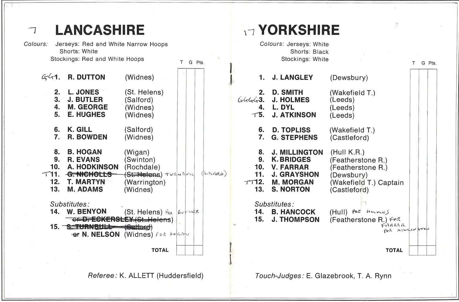 Vertical fold, slight creasing. Score/team changes in ink on team line up page (as per scan)