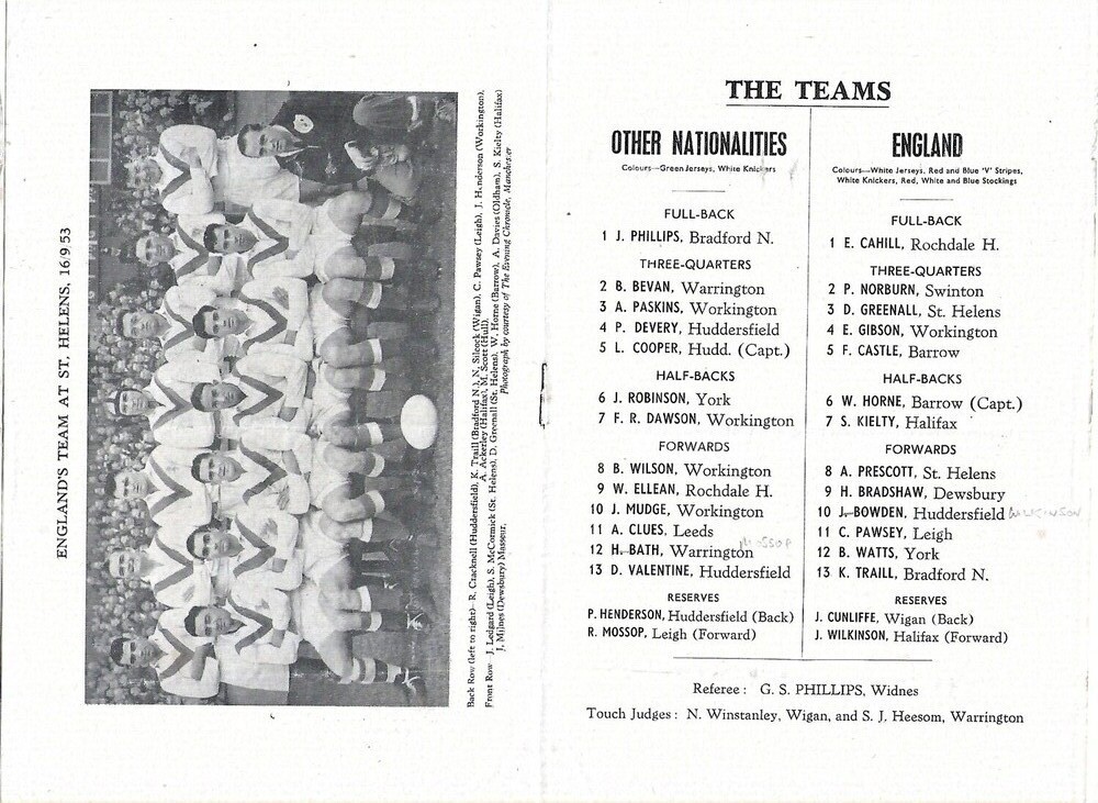 1953 Other Nationalities v England Rugby League Programme