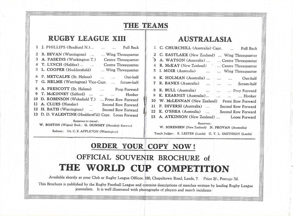 1954 Rugby League XIII v Australasia Rugby League Programme