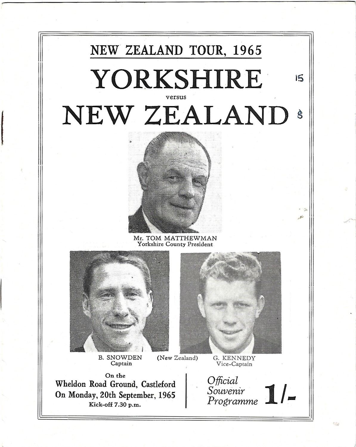 1965 Yorkshire v New Zealand Tour Match (20/09/1965) Rugby League Programme