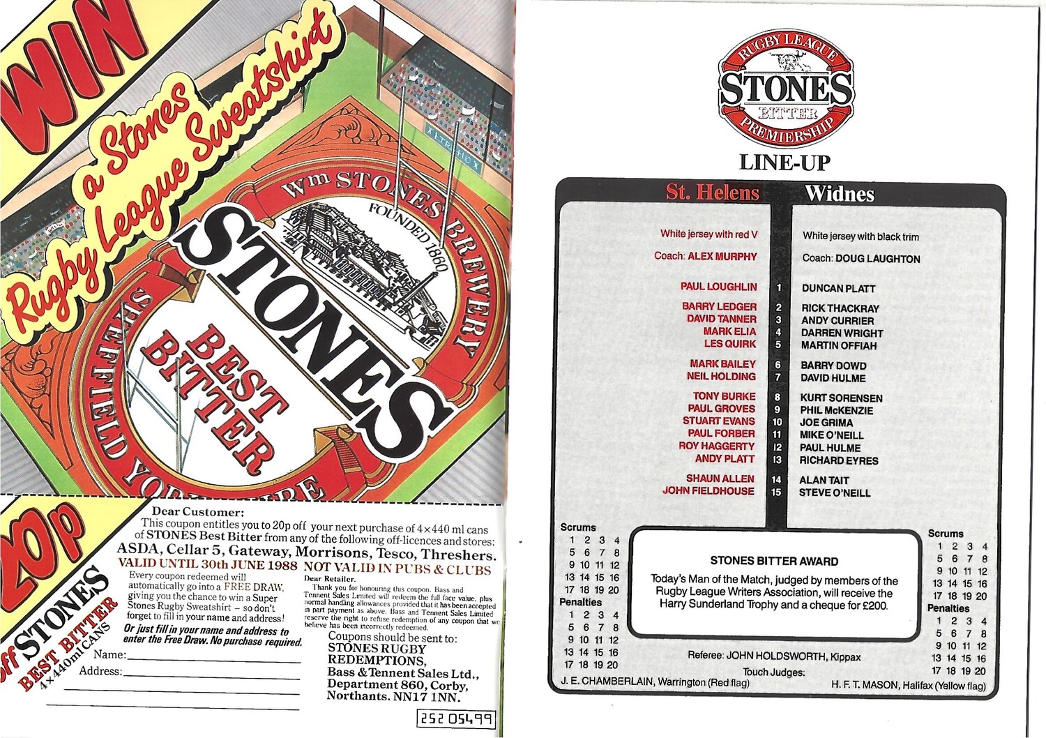 1988 St. Helens v Widnes Rugby League Premiership Trophy Final Programme