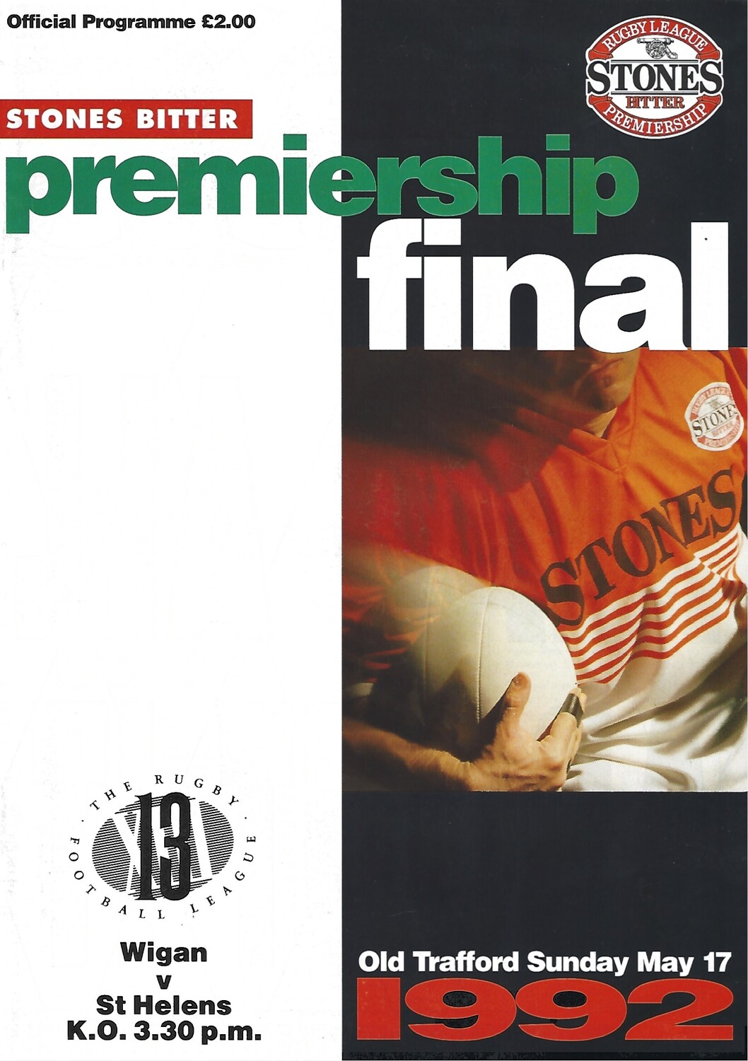 1992 Wigan v St. Helens Rugby League Premiership Trophy Final Programme