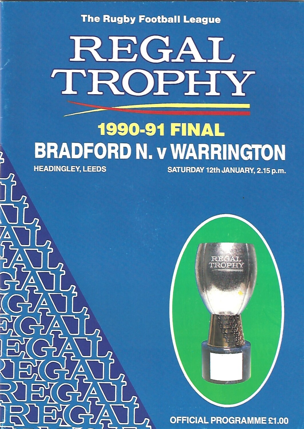 1990/91 Bradford Northern v Warrington Regal Trophy Final Rugby League Programme
