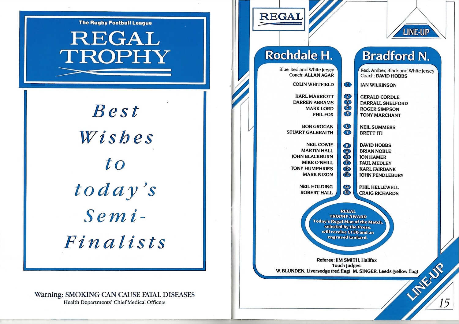 1990/91 Rochdale Hornets v Bradford Northern Regal Trophy Semi Final Rugby League Programme