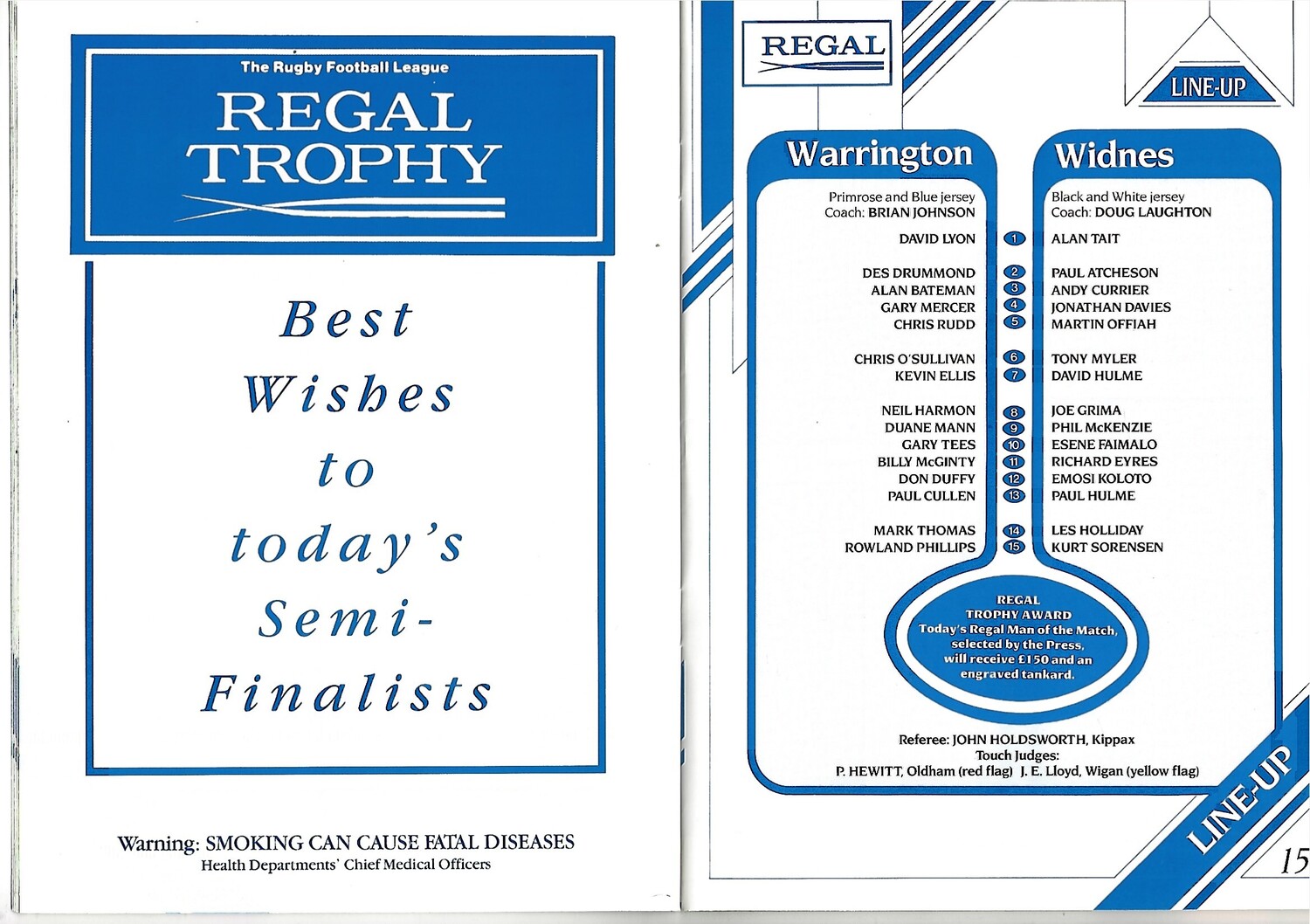 1990/91 Warrington v Widnes Regal Trophy Semi Final Rugby League Programme