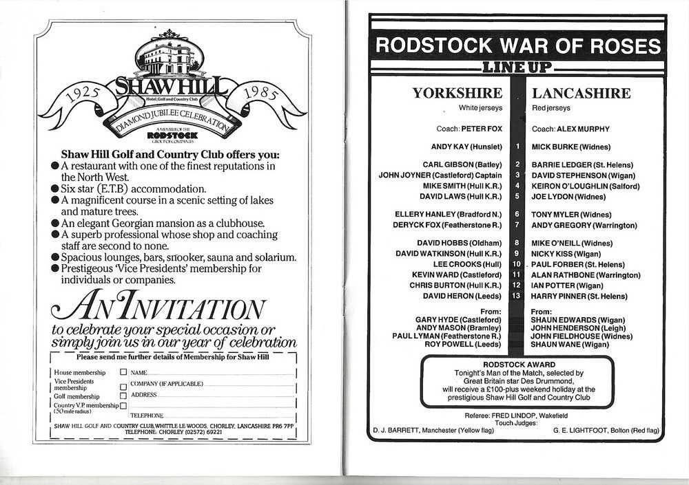 1985 Lancashire v Yorkshire Rostock Cup Rugby League Programme