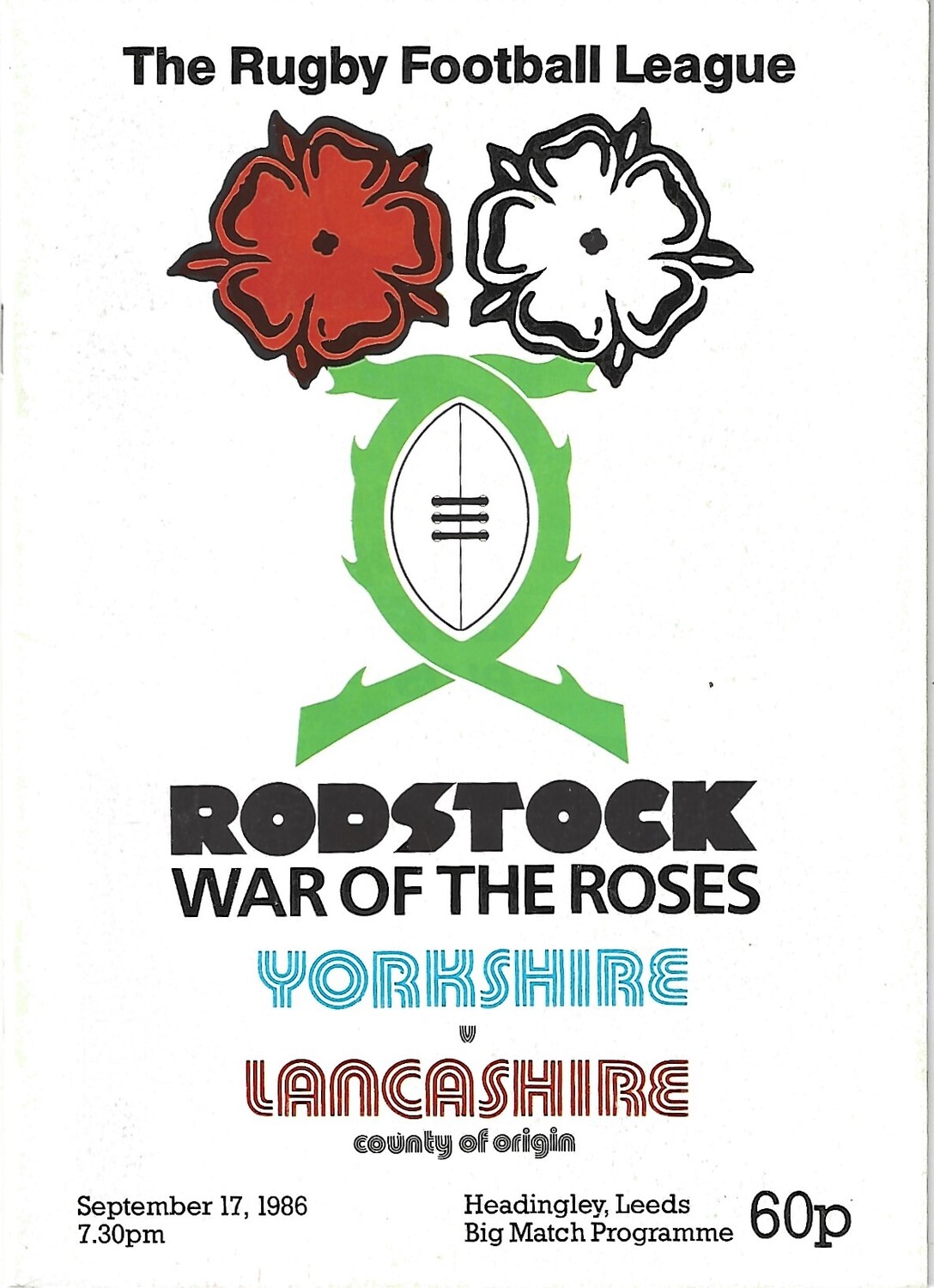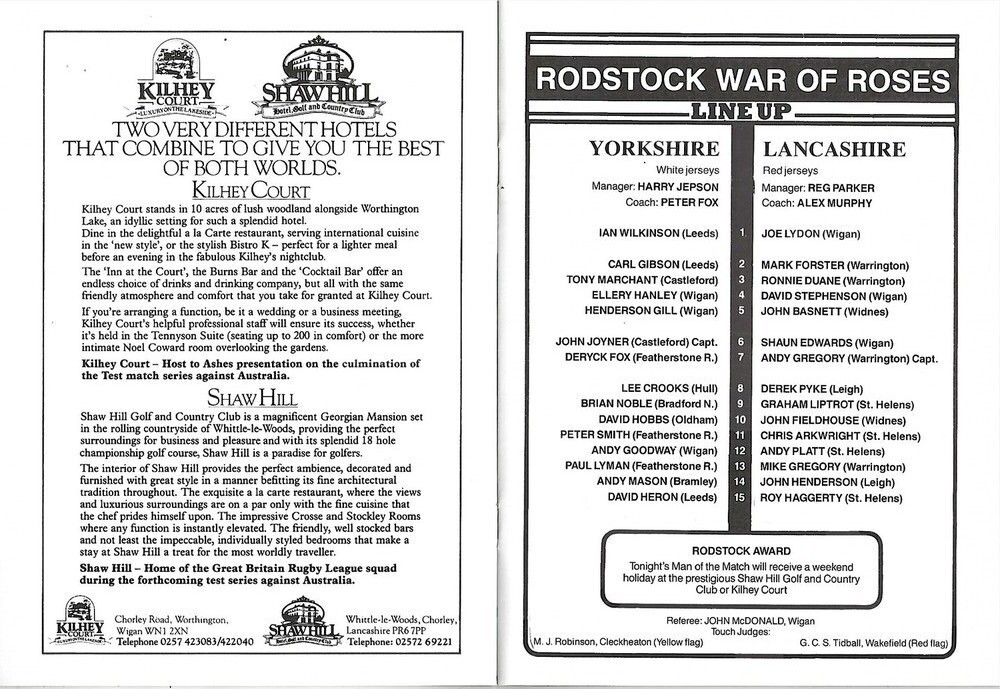 1986 Yorkshire v Lancashire Rostock Cup Rugby League Programme