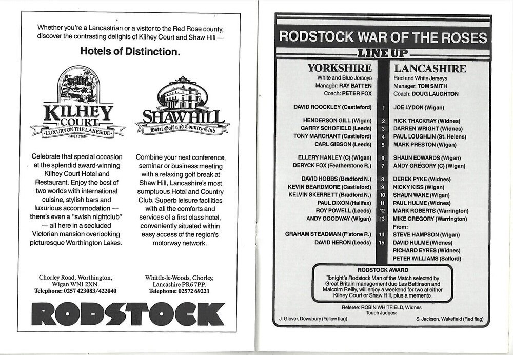 1988 Yorkshire v Lancashire Rostock Cup Rugby League Programme