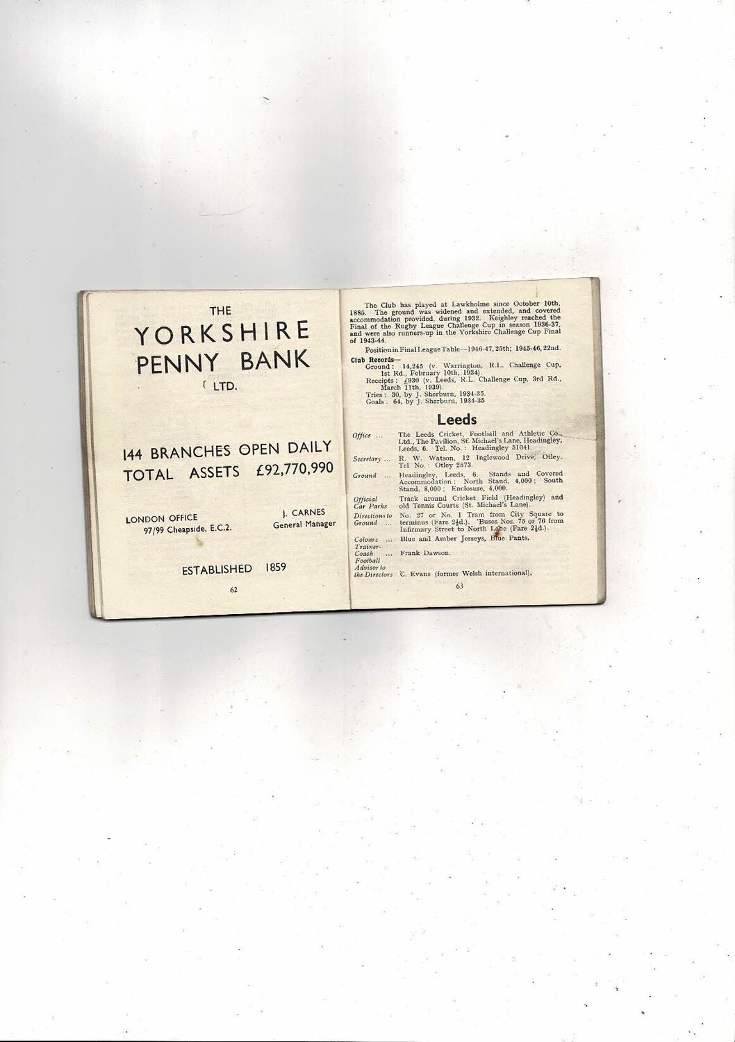 This Original Rugby League Annual is creased with some staining, tear on page 63. No handwriting. Please see scans.