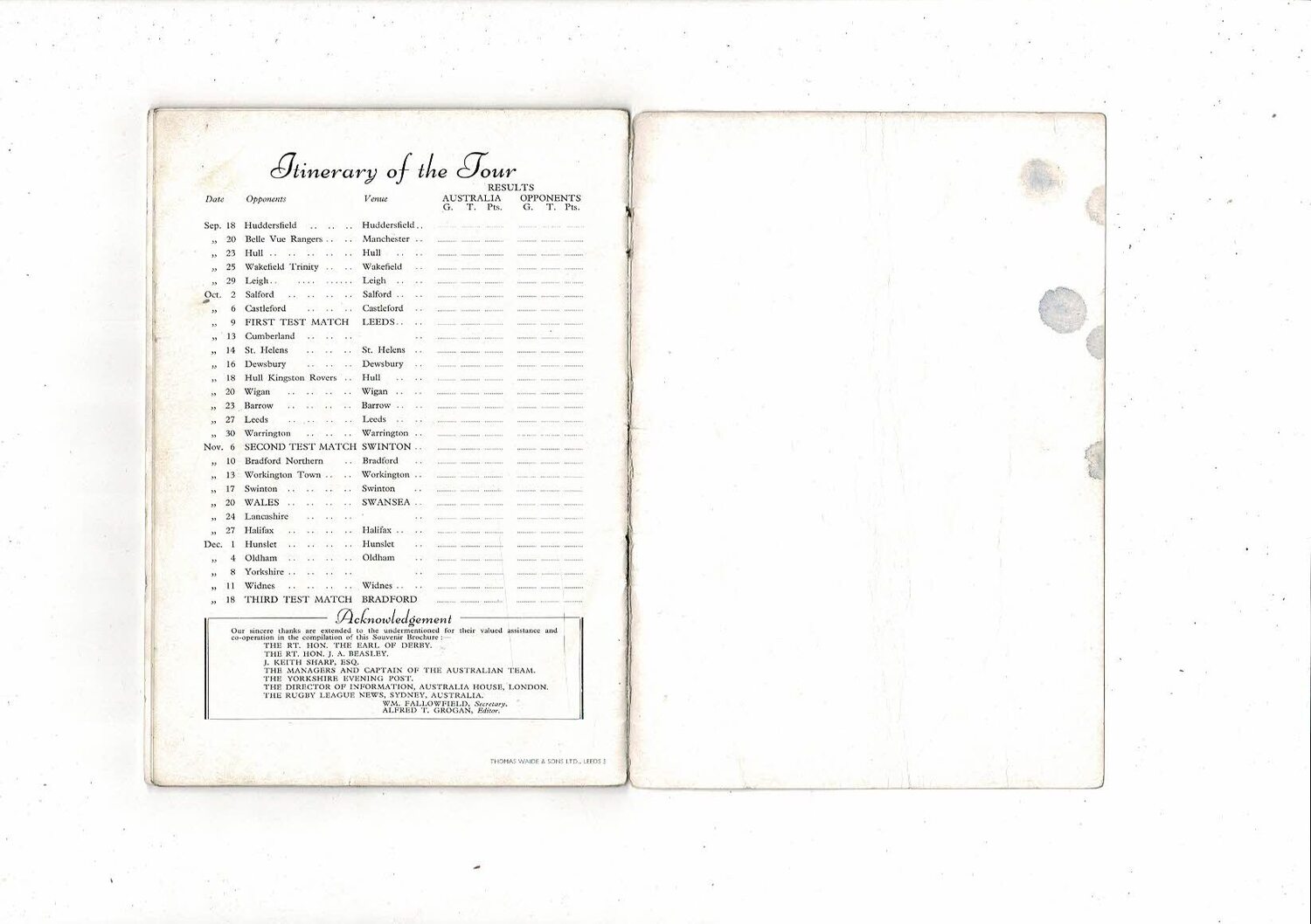 This original Rugby League Brochure is creased also has a fold with some staining, rusty staples, several tears one large on spine & some with tape. No handwriting. Please see scans.