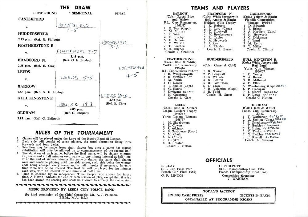 Slight creasing front/rear cover, slight discolouration, team changes/score in ink on team line up page (as per photo)