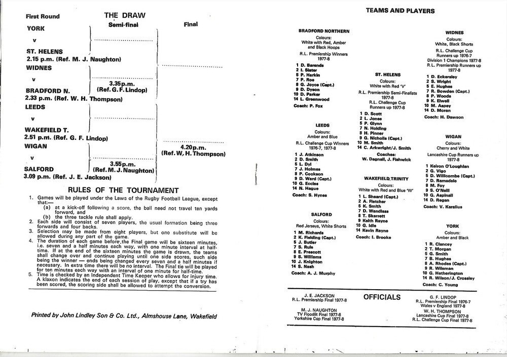 1978 Rugby League Embassy Sevens Programme