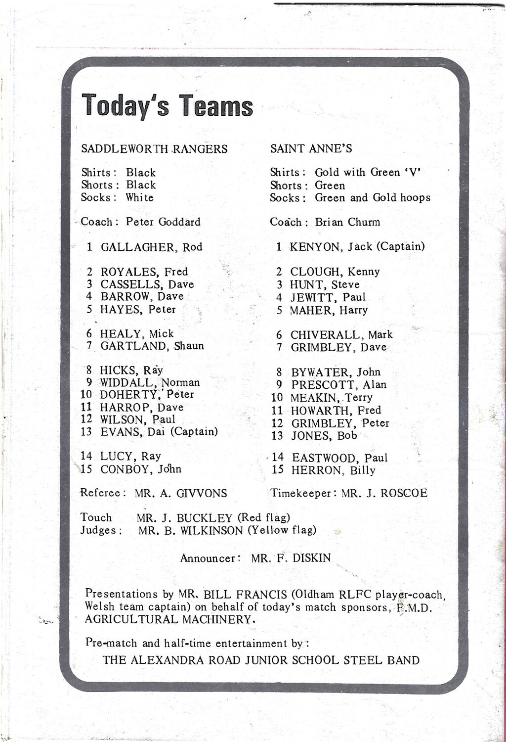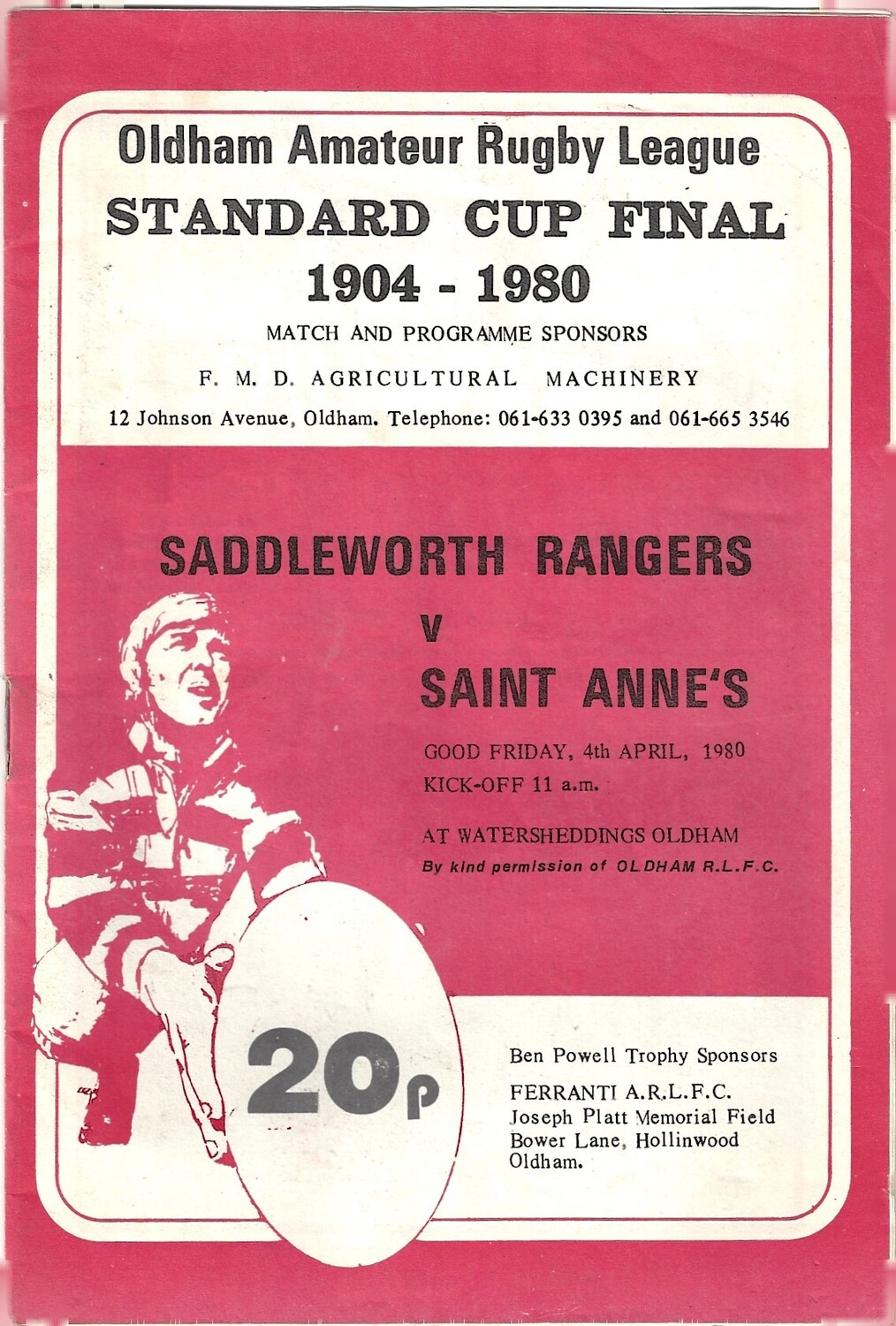 1980 Saddleworth Rangers v Saint Anne's Standard Cup Final Rugby League Programme