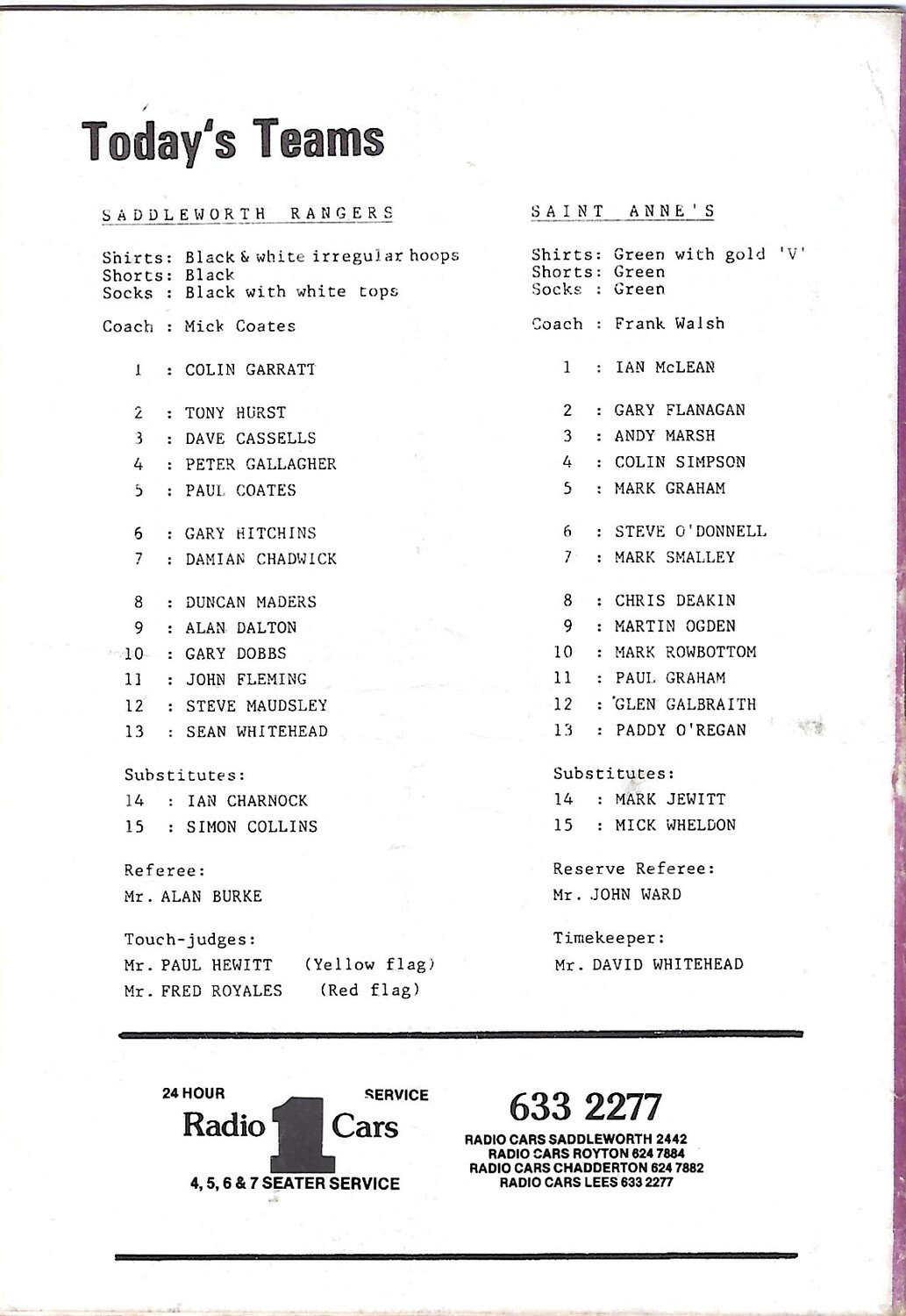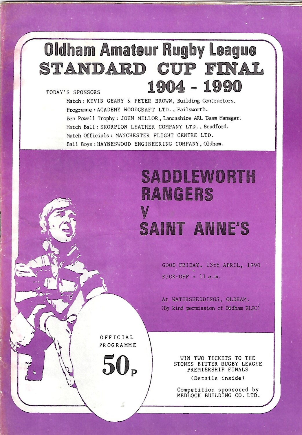 1990 Saddleworth Rangers v St. Anne's Standard Cup Final Rugby League Programme