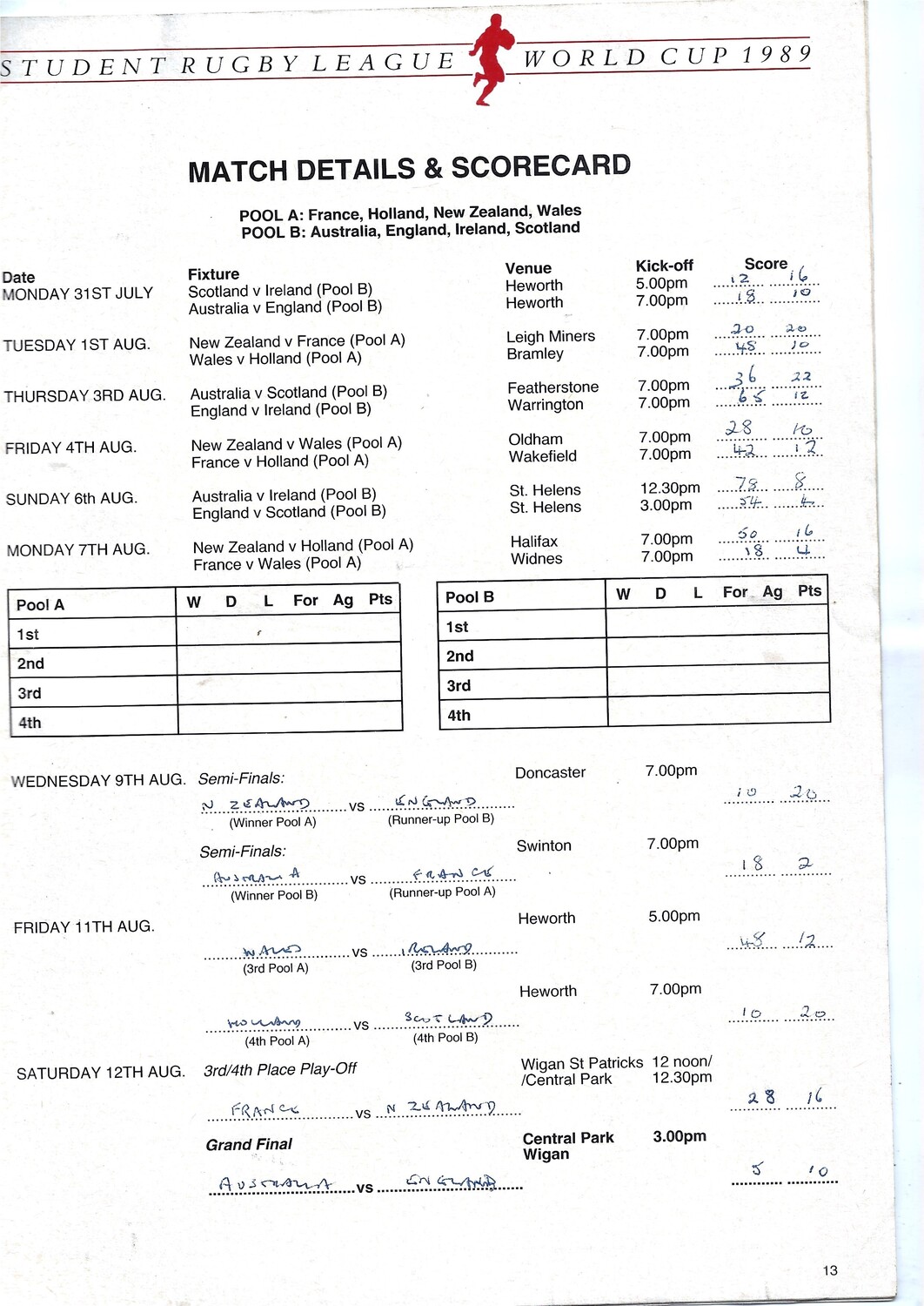 1989 Student Rugby League World Cup Rugby League Programme