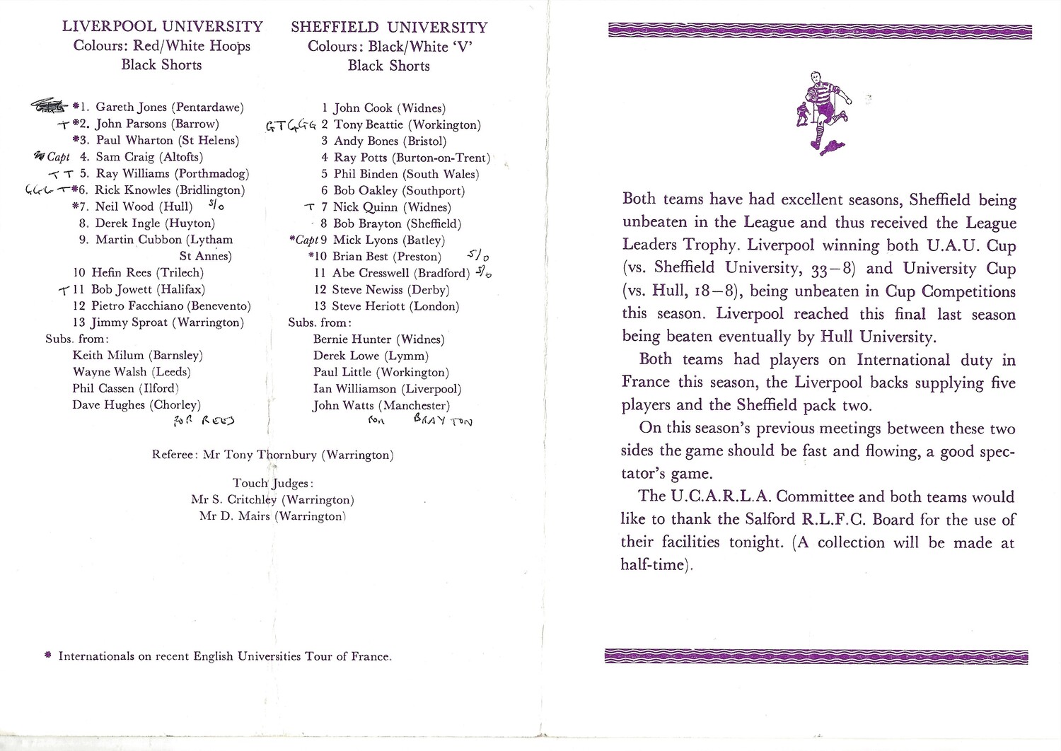 1980 Liverpool University v Sheffield University (30/04/1980) UCARLA Championship Final Rugby League Programme