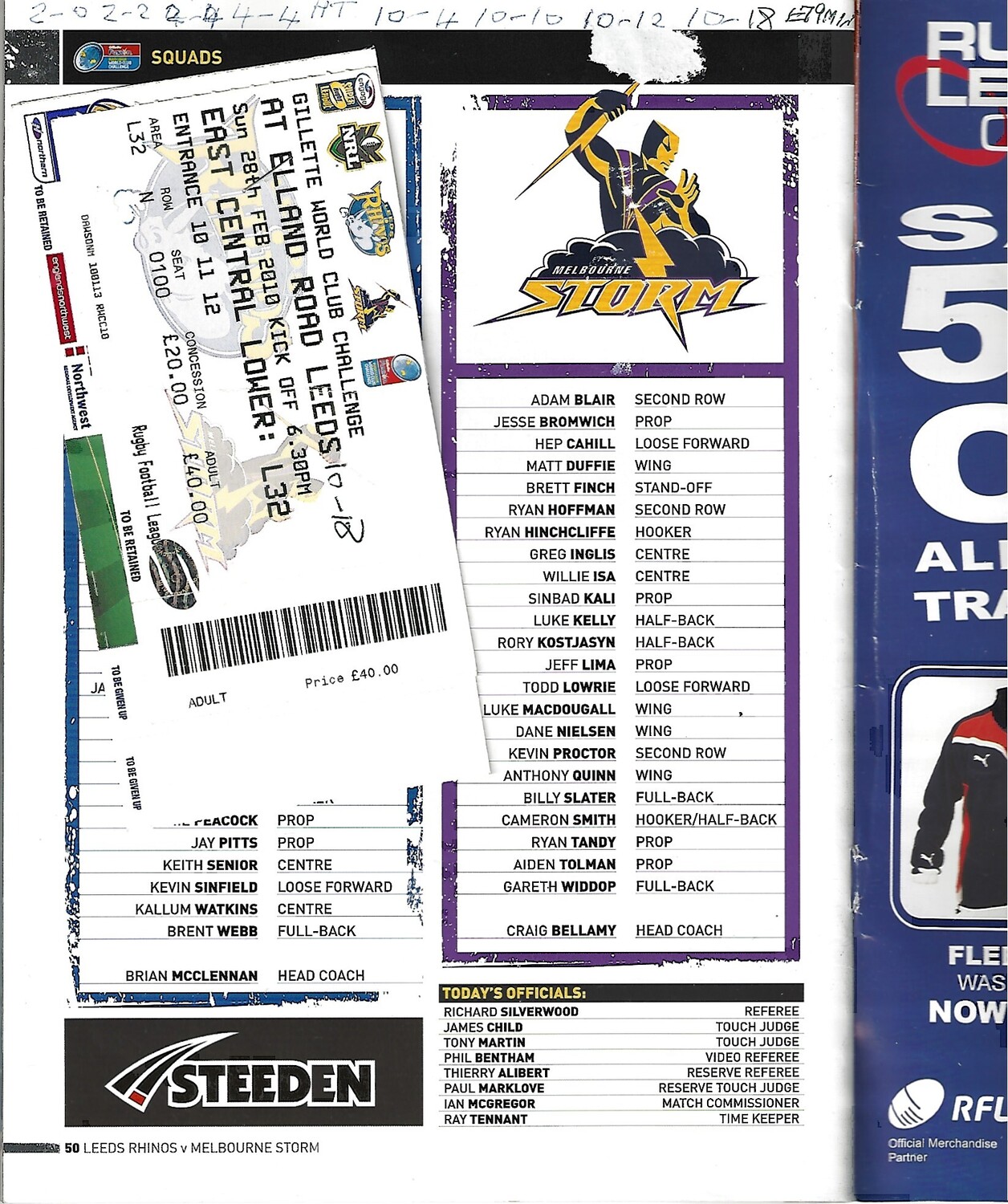 2010 Leeds Rhinos v Melbourne Storm Rugby League World Club Challenge Programme