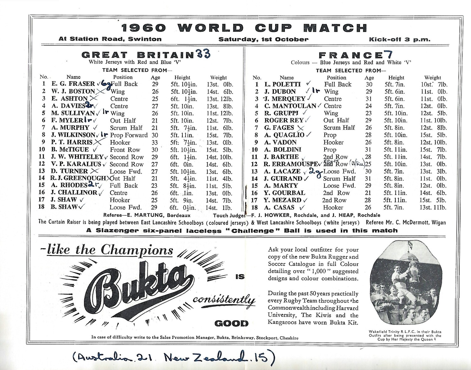 Slight creasing front/rear cover, slight discolouration, team changes/score in ink on team line up page (as per photo)