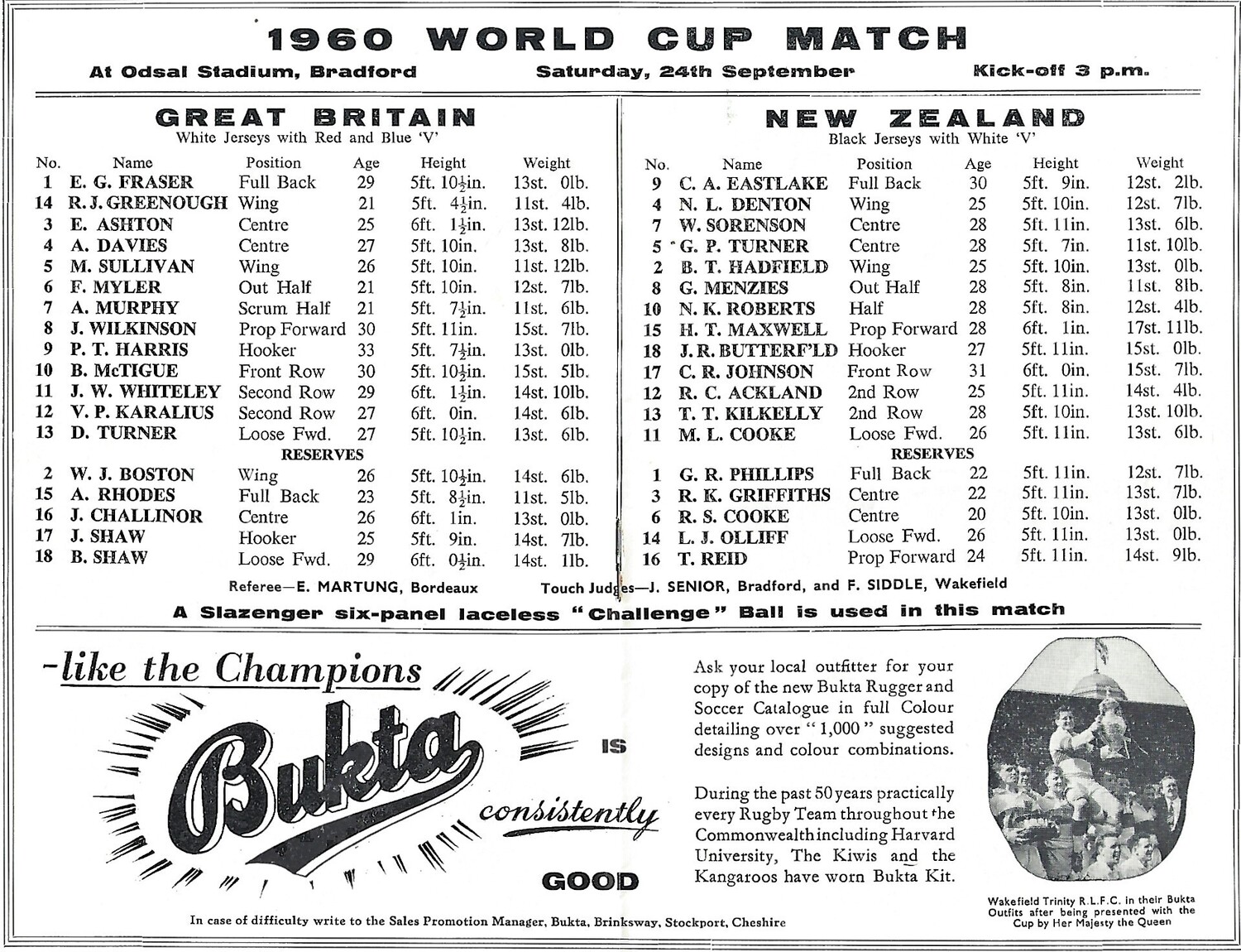 1960 Great Britain v New Zealand Rugby League World Cup Programme