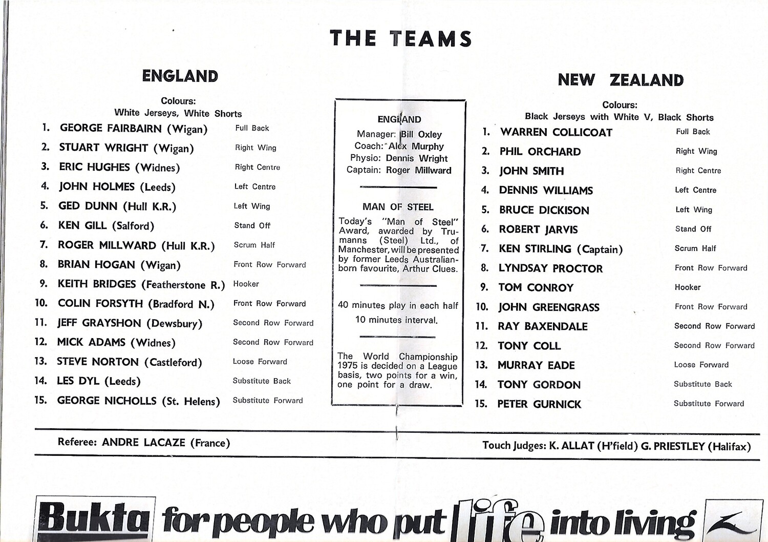 1975 England v New Zealand Rugby League World Cup Programme