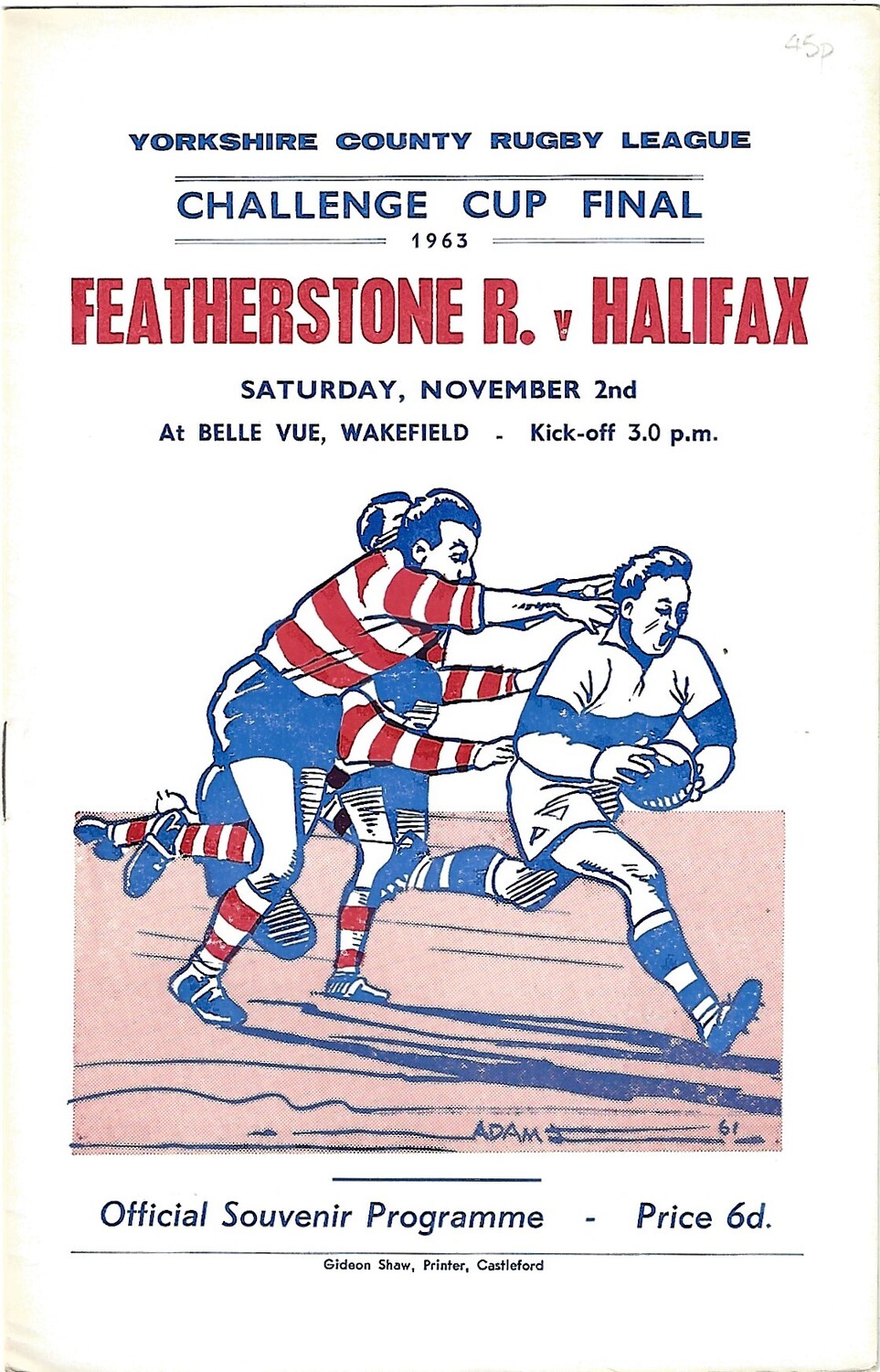 1963 Featherstone Rovers v Halifax Yorkshire County Challenge Cup Final Rugby League Programme