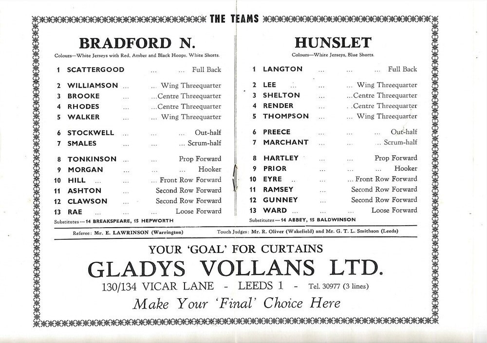 1965 Bradford Northern v Hunslett Yorkshire County Challenge Cup Final Rugby League Programme