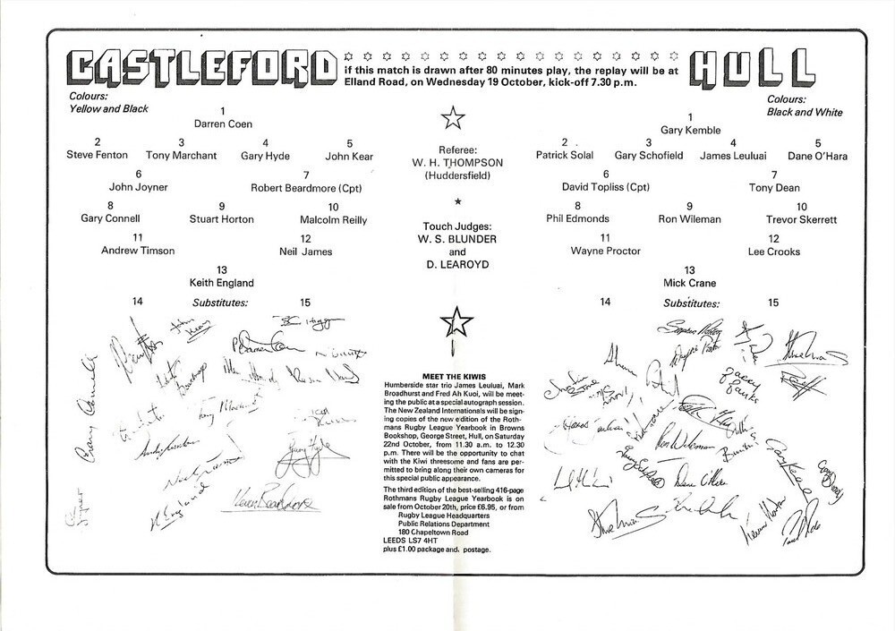 1983 Castleford v Hull Yorkshire County Challenge Cup Final Rugby League Programme