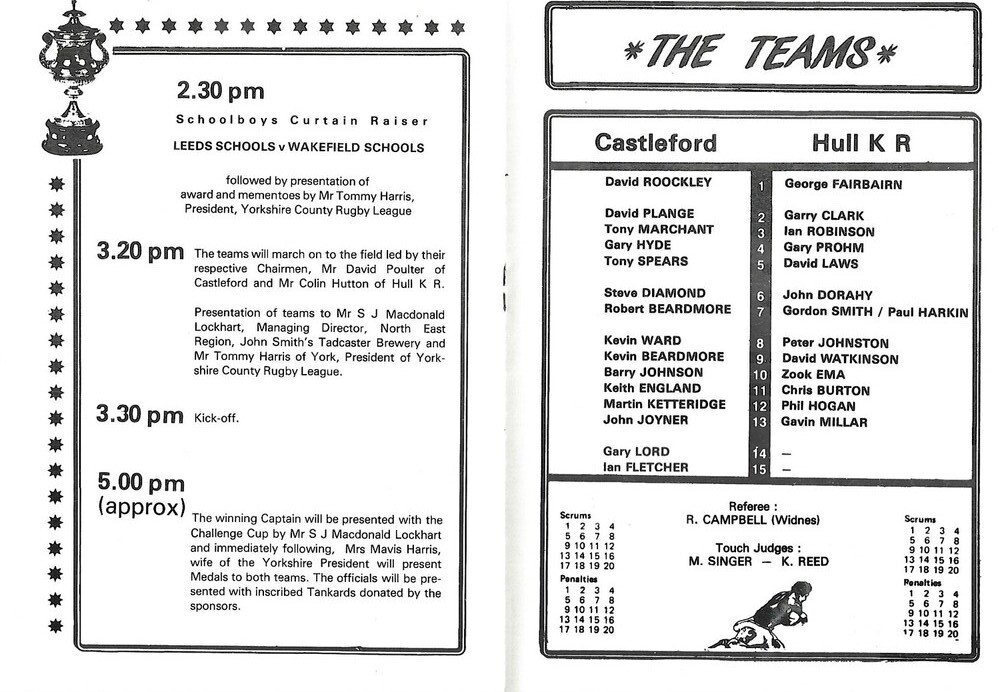1985 Castleford v Hull Kingston Rovers Yorkshire County Challenge Cup Final Rugby League Programme