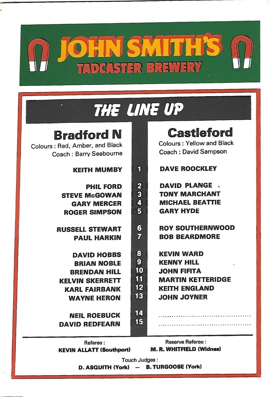 1987 Bradford Northern v Castleford Yorkshire County Challenge Cup Final Replay Programme