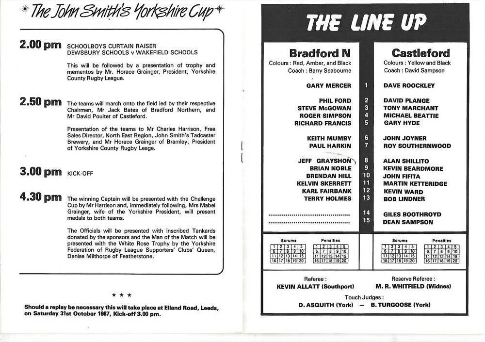 1987 Bradford Northern v Castleford Yorkshire County Challenge Cup Final Rugby League Programme