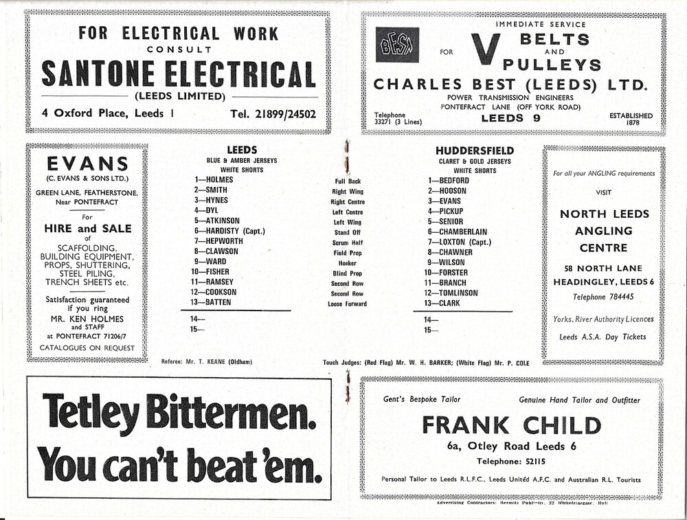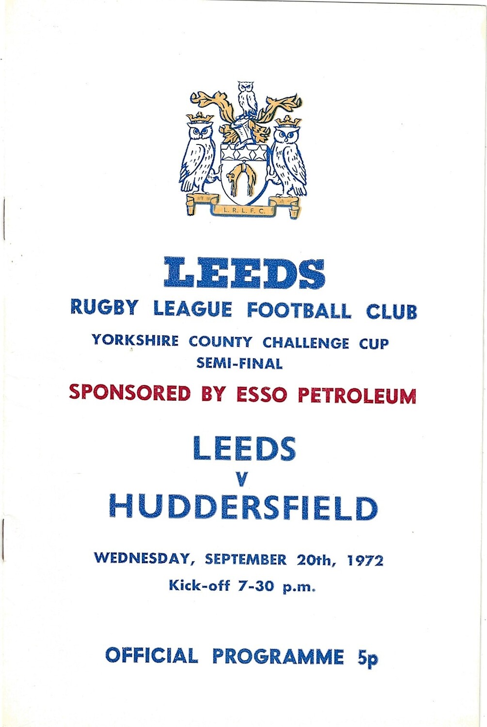 1972 Leeds v Huddersfield Yorkshire County Challenge Cup Semi Final Rugby League Programme