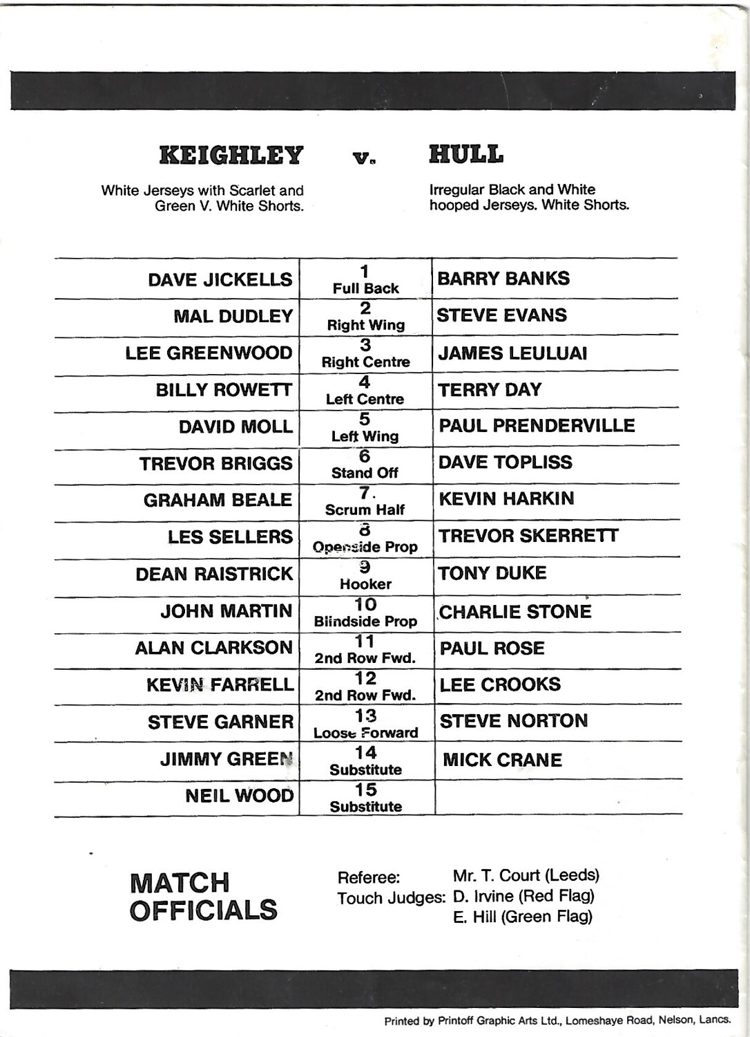1982 Keighley v Hull Yorkshire County Challenge Cup Semi Final Rugby League Programme