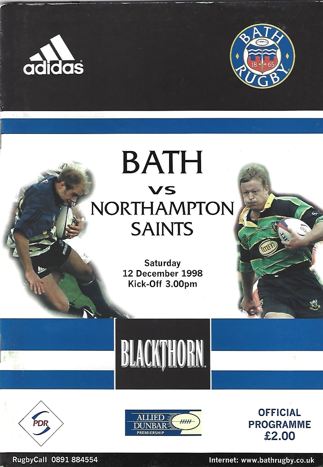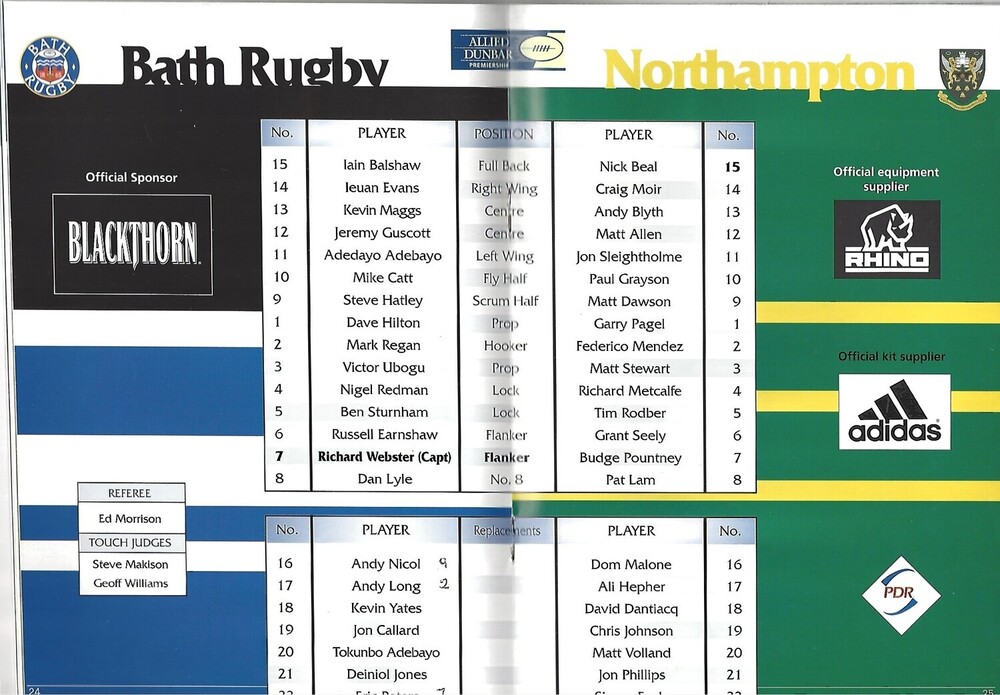 1998/99 Bath v Northampton Saints (12/12/1998) Rugby Union Programme