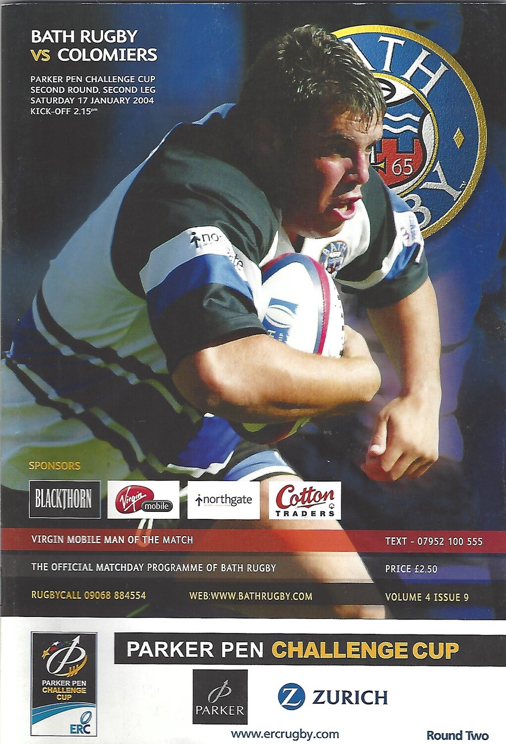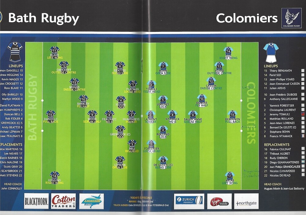 2003/04 Bath v Colomiers (17/01/2004) Parker Pen Challenge Cup Second Round Second Leg Rugby Union Programme