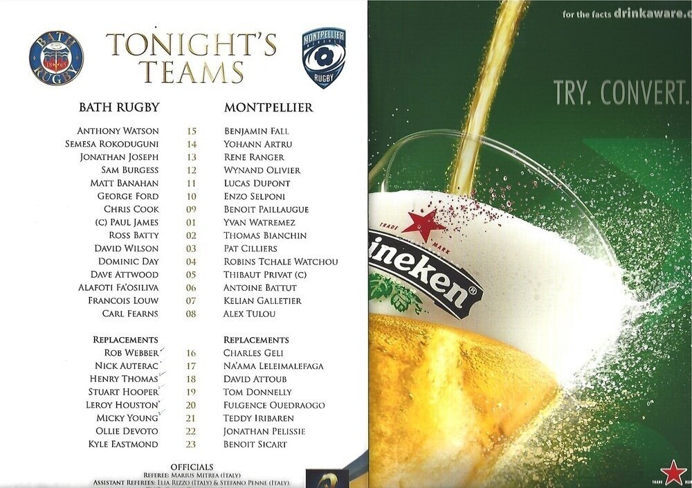 2014/15 Bath v Montpellier (12/12/2014) European Rugby Champions Cup Rugby Union Programme