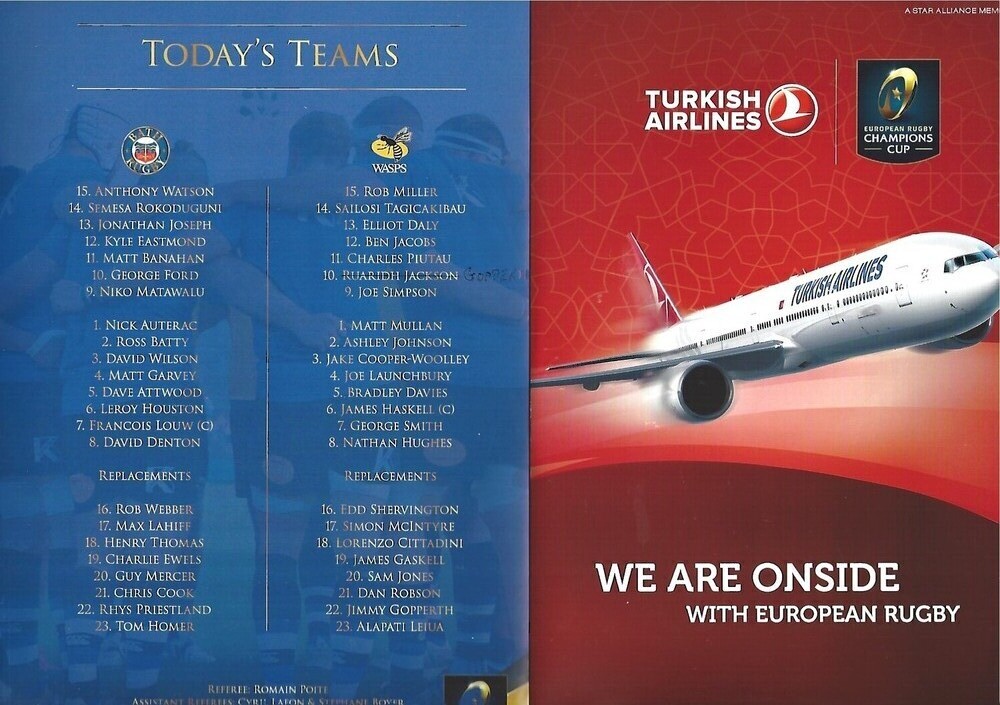 2015/16 Bath v Wasps (19/12/2015) European Rugby Champions Cup Rugby Union Programme