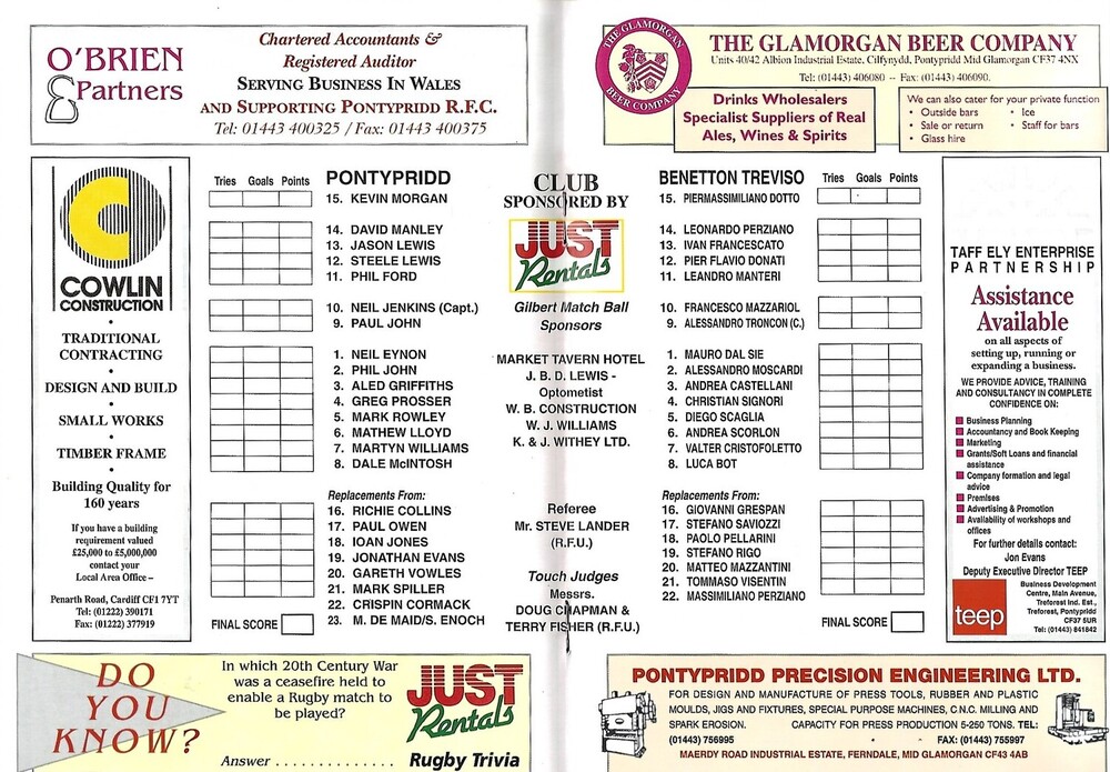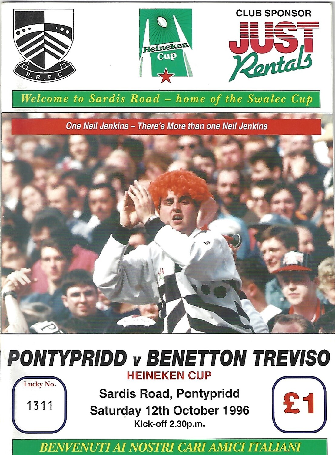 1996/97 Pontypridd v Benetton Treviso Heineken Cup Group Match (12/10/1996) Rugby Union Programme