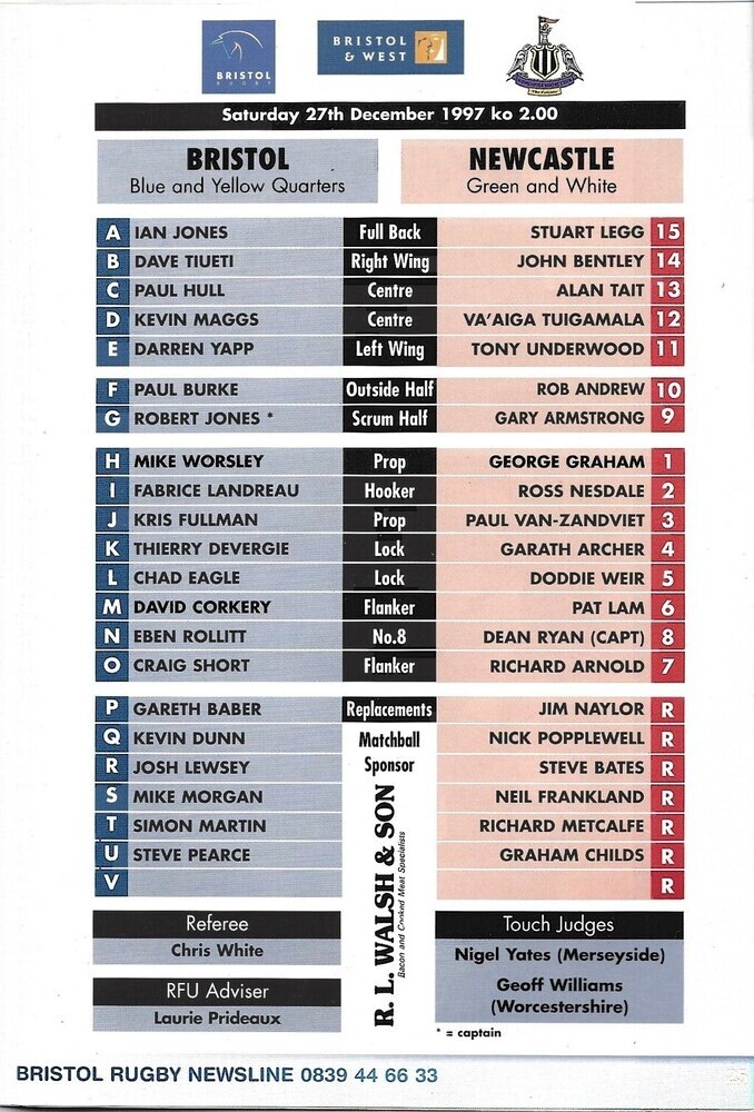 1997/98 Bristol v Newcastle Rugby Union Programme
