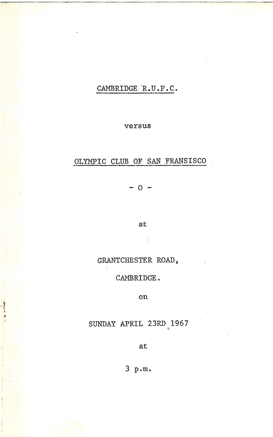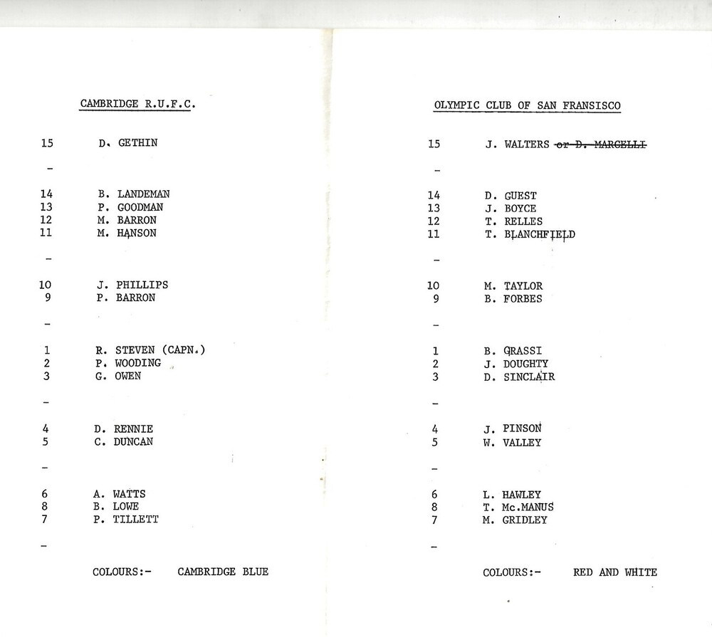 1966/67 Cambridge v Olympic Club of San Francisco (23/04/1967) Rugby Union Programme