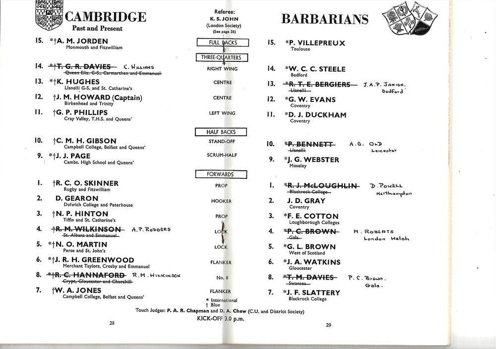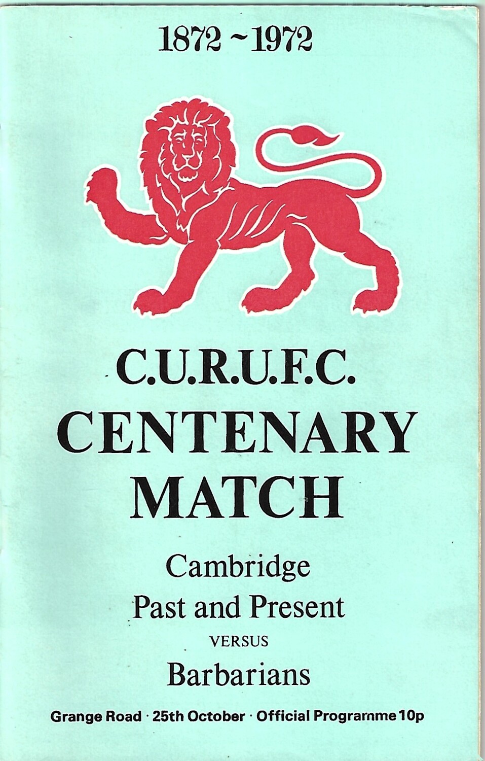 1972/73 Cambridge University (Past & Present) v Babarians (25/10/1972) Centenary Match Rugby Union Programme