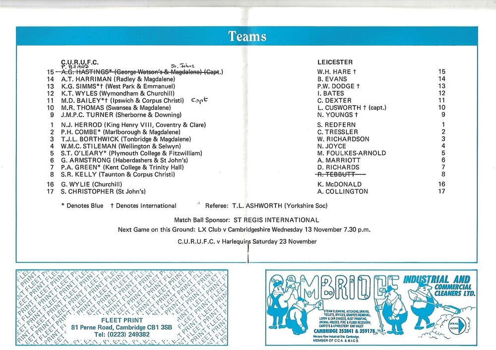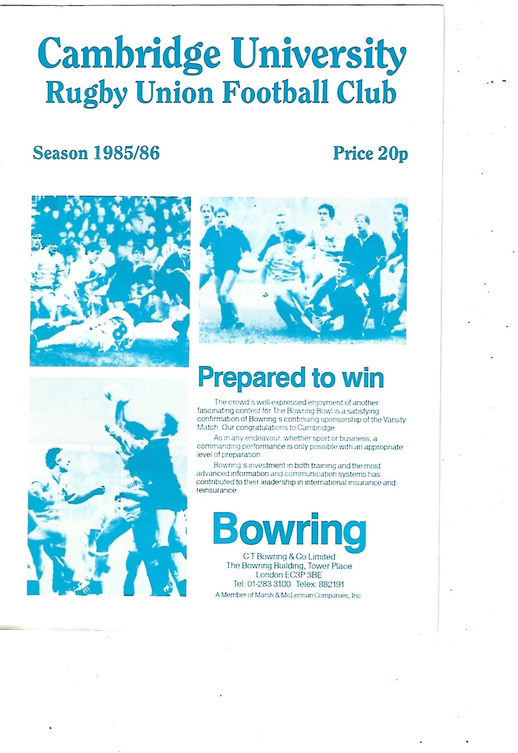 1985/86 Cambridge University v Leicester (09/11/1985) Rugby Union Programme