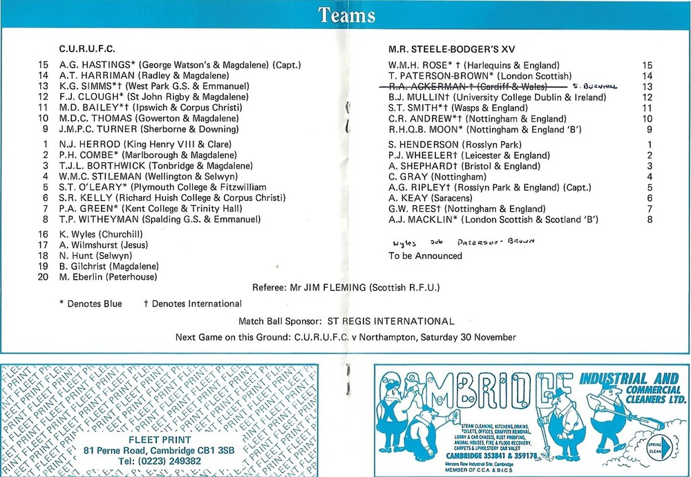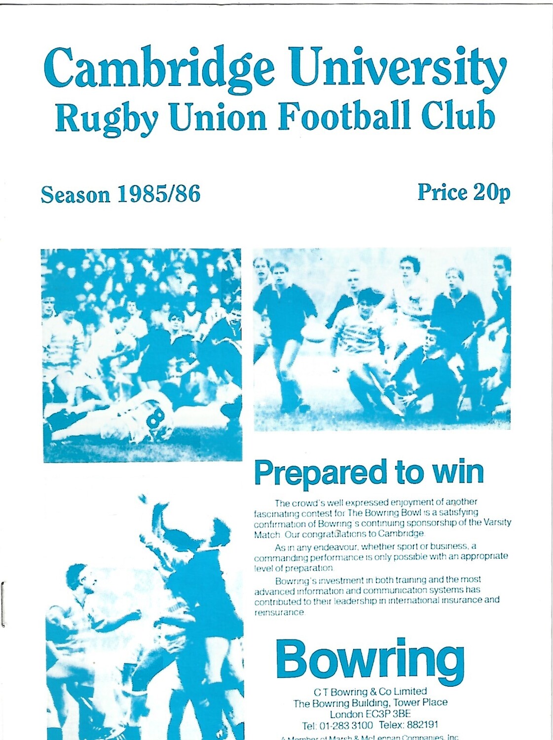 1985/86 Cambridge University v M.R Steele-Bodger's XV (27/11/1985) Rugby Union Programme