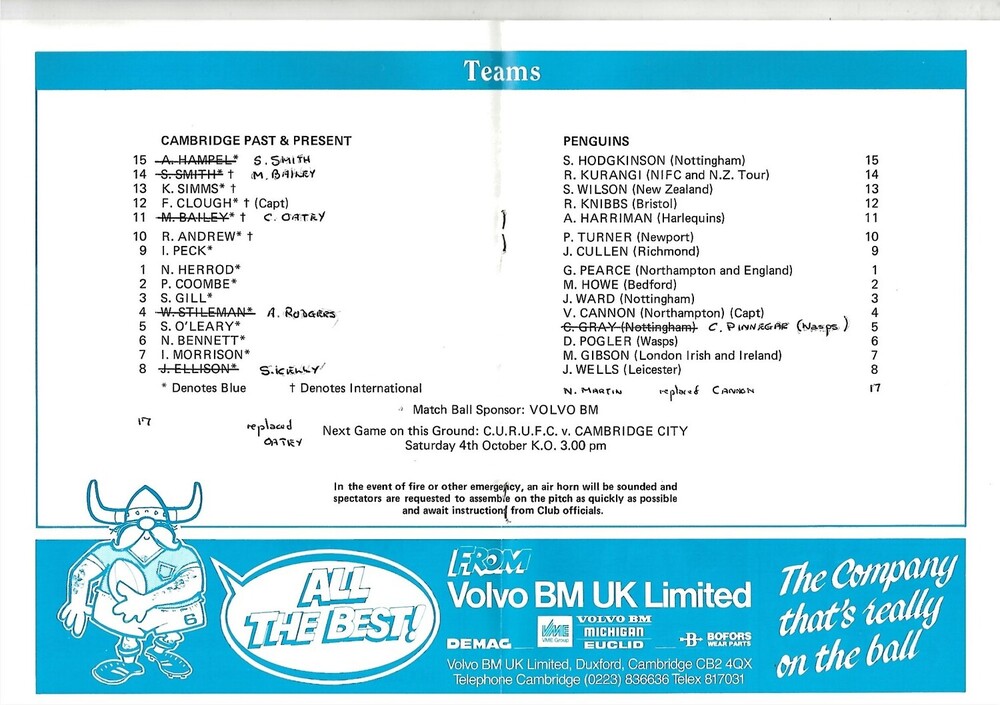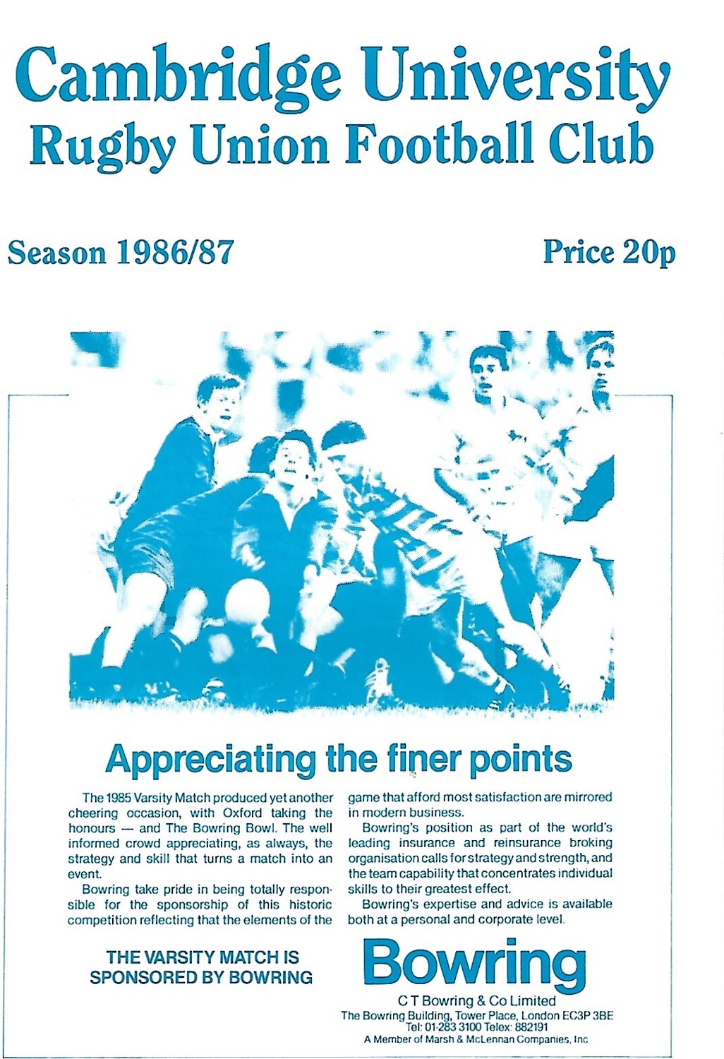 1986/87 Cambridge University (Past & Present) v Penguins (01/10/1986) Rugby Union Programme
