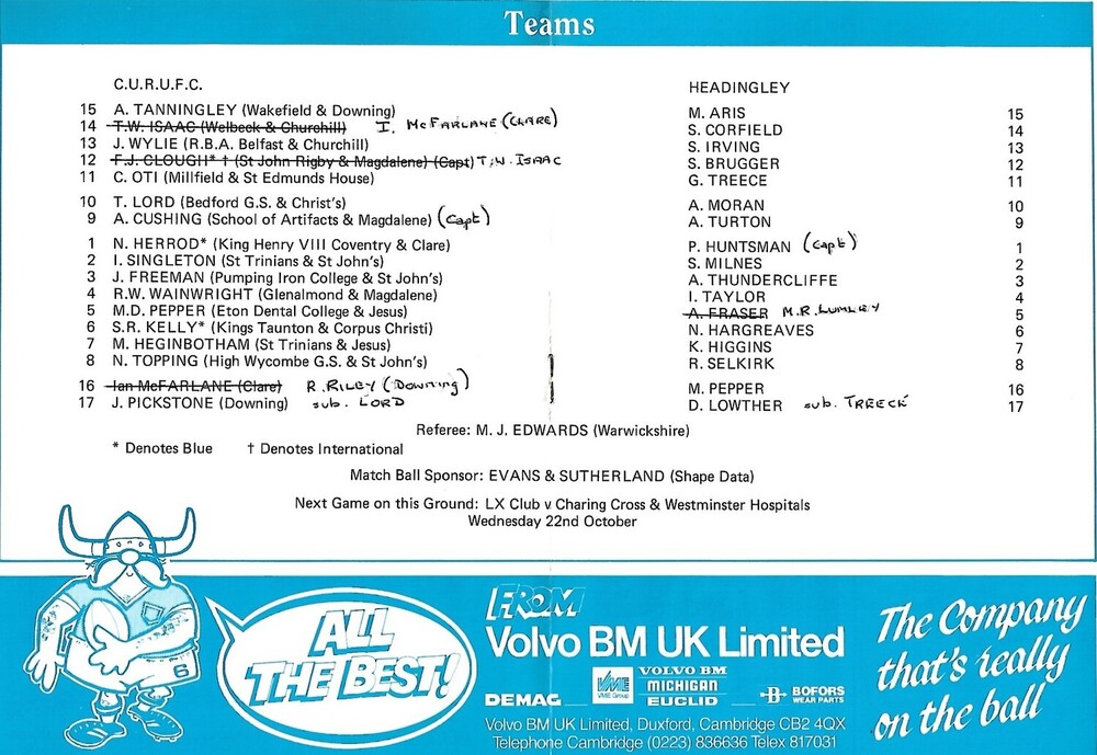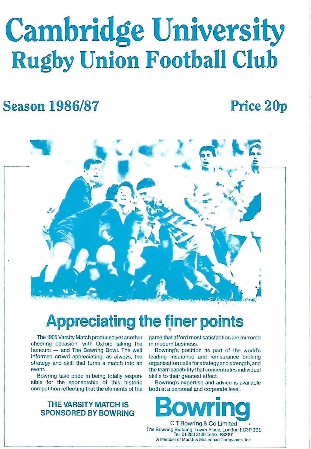 1986/87 Cambridge University v Headingley (18/10/1986) Rugby Union Programme